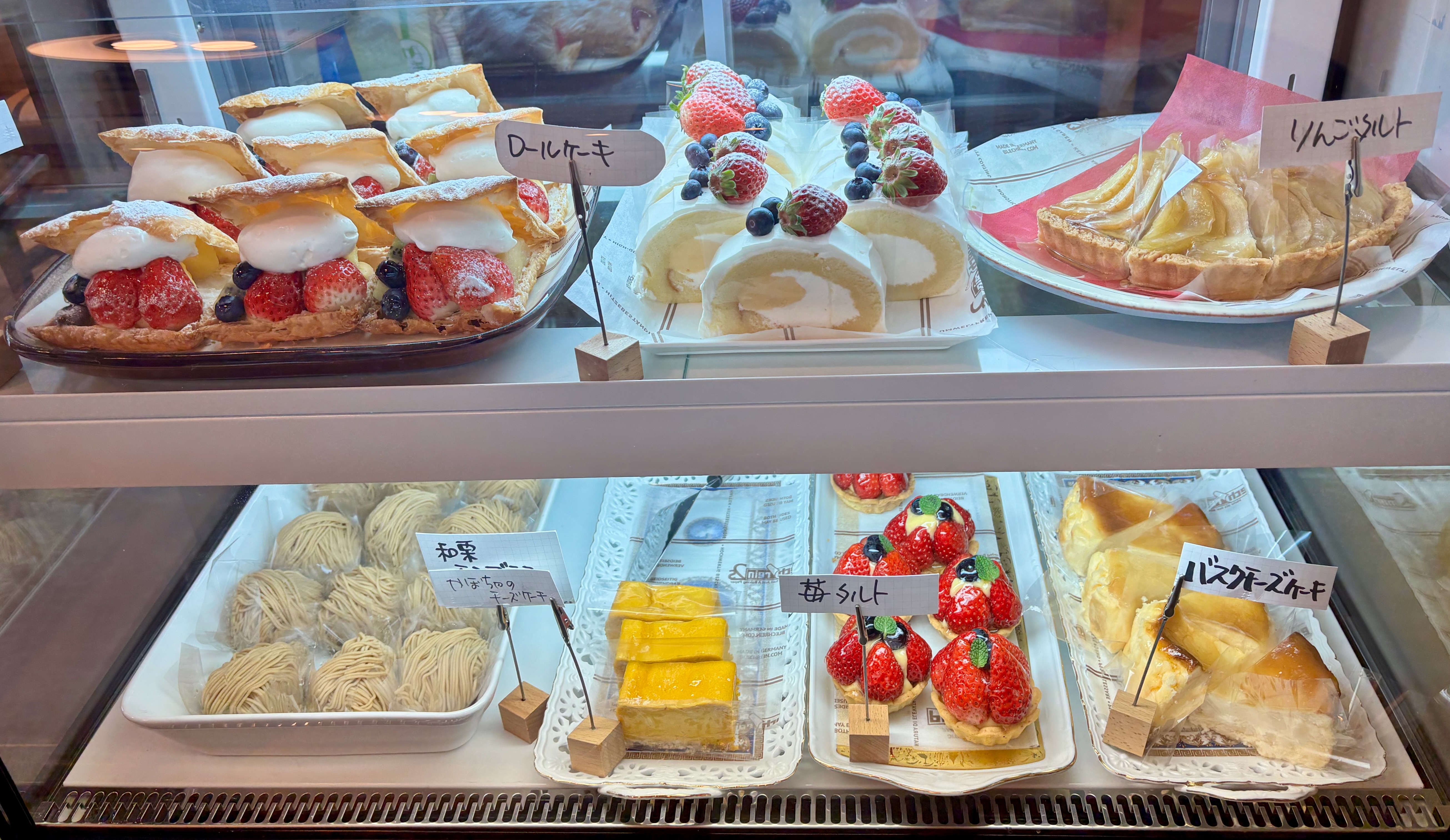 バスクチーズケーキや苺タルト、ミルフィーユ、モンブランなど、クラシックな洋菓子をベースにしつつ、見た目の華やかさにもこだわったラインナップが印象的です。