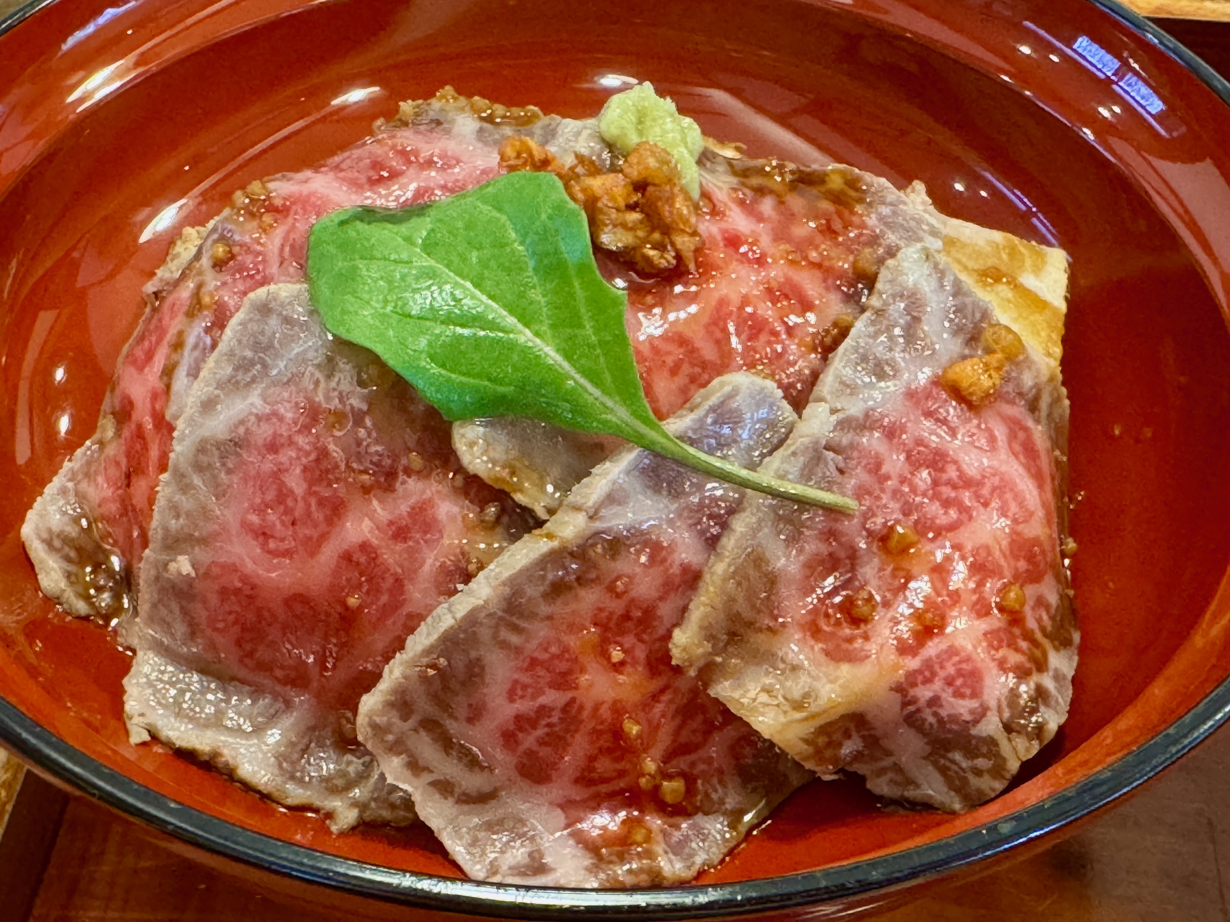赤身の柔らかさが際立ち、噛むたびに肉汁と旨みがじわっと広がり、ガーリックを効かせた特製ソースがその旨みをしっかりと受け止めてくれます。