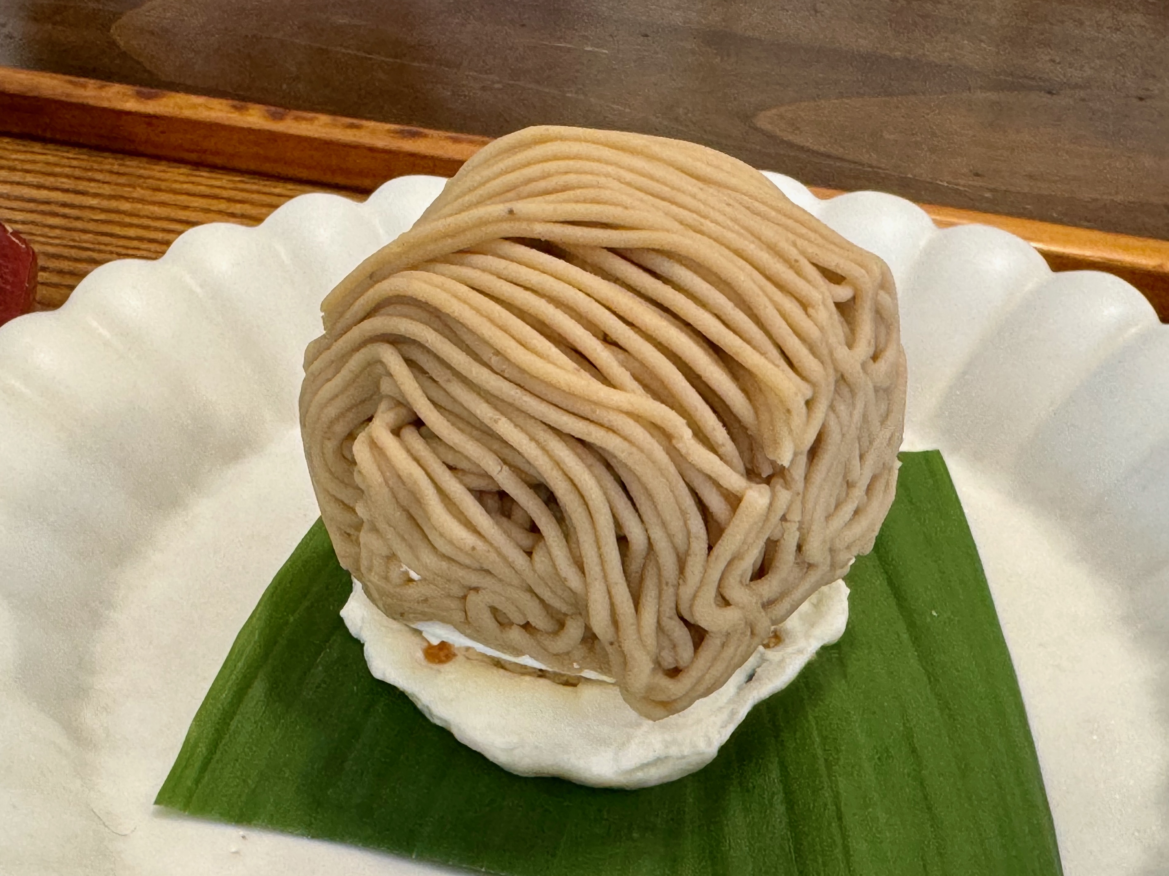 和栗モンブランは、トップに絞られた和栗クリームが主役で、ひと口目から栗本来の香りとほっくりした甘みがふわりと広がります。