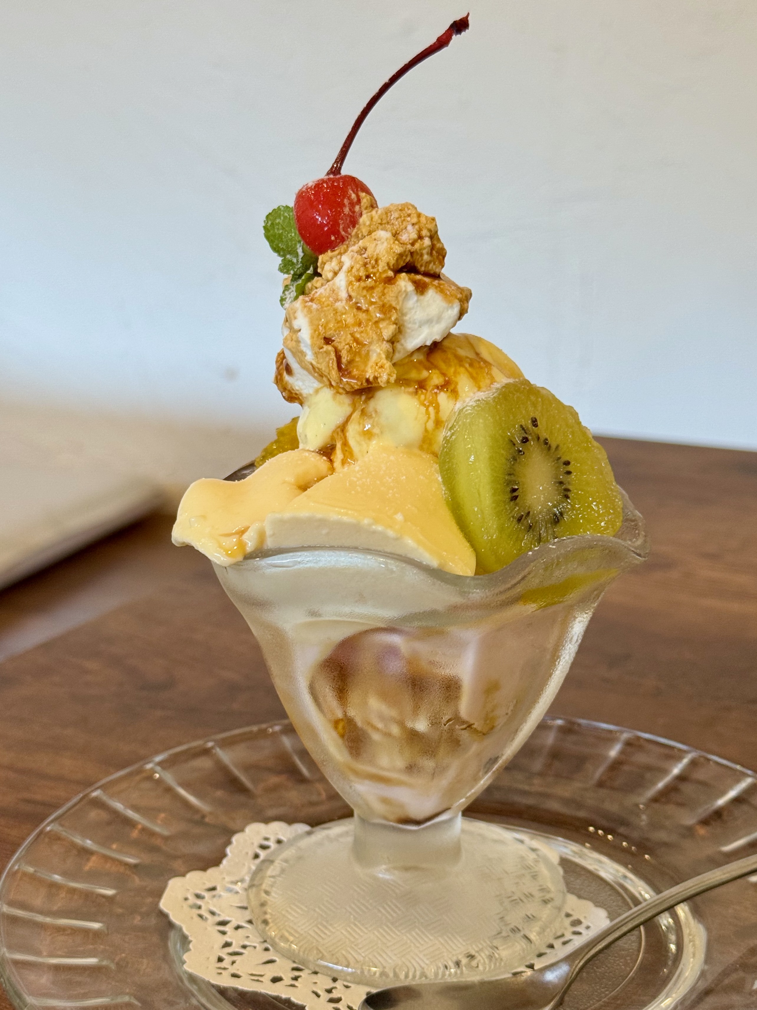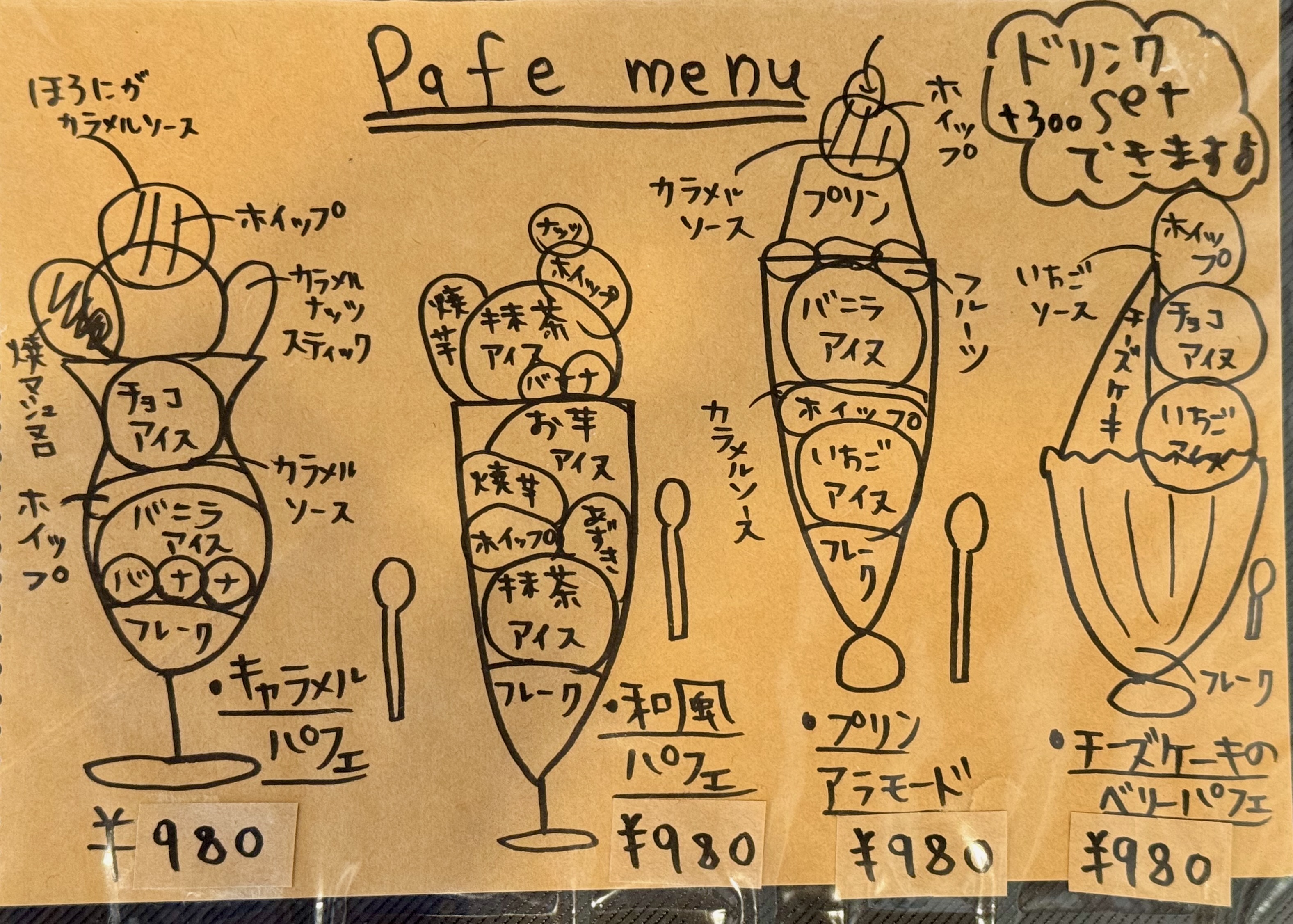 食事をした方限定で、パフェメニューの中から400円でハーフサイズが注文できます。