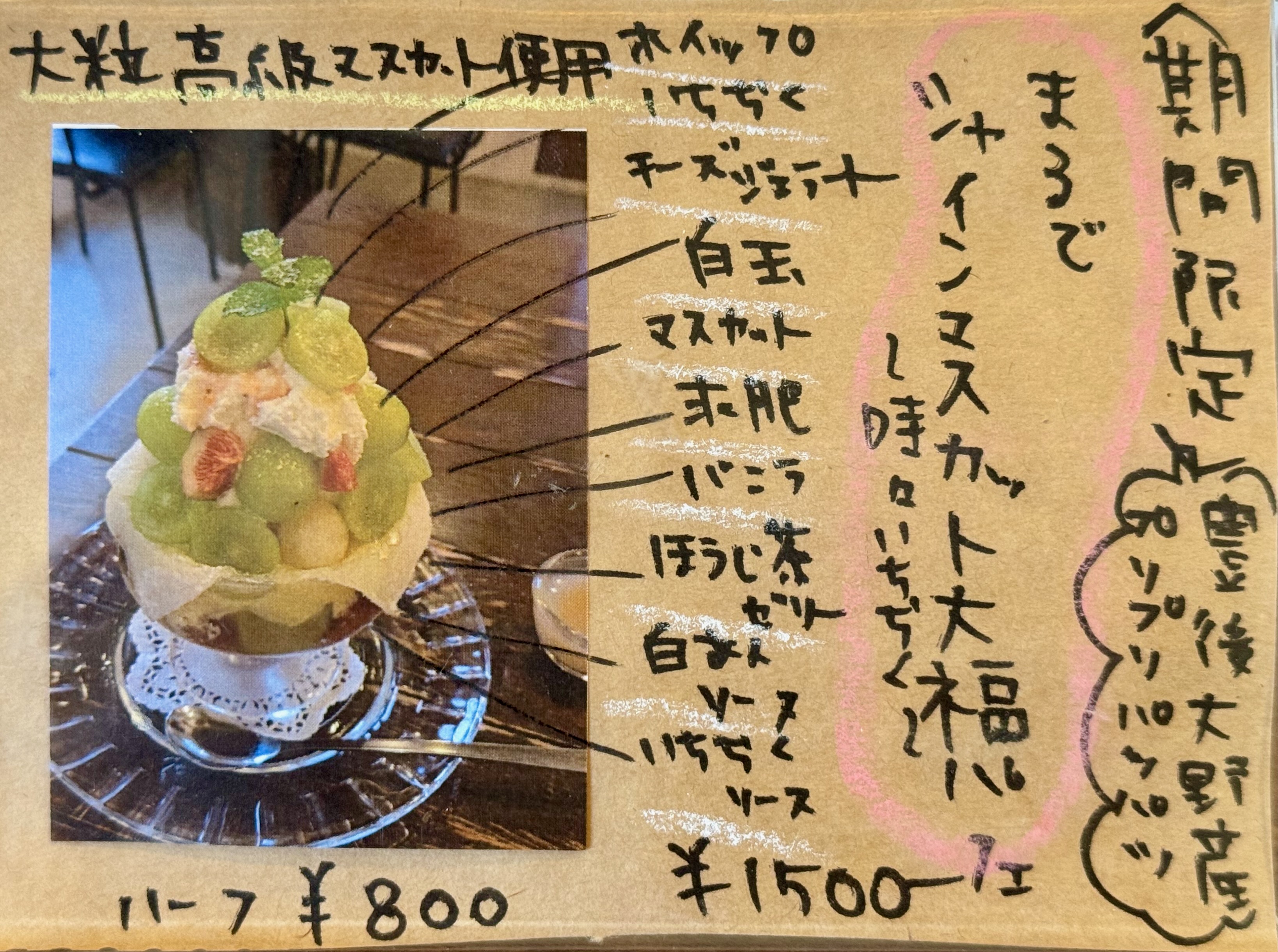 期間限定のシャインマスカットのパフェもハーフサイズを注文しました。