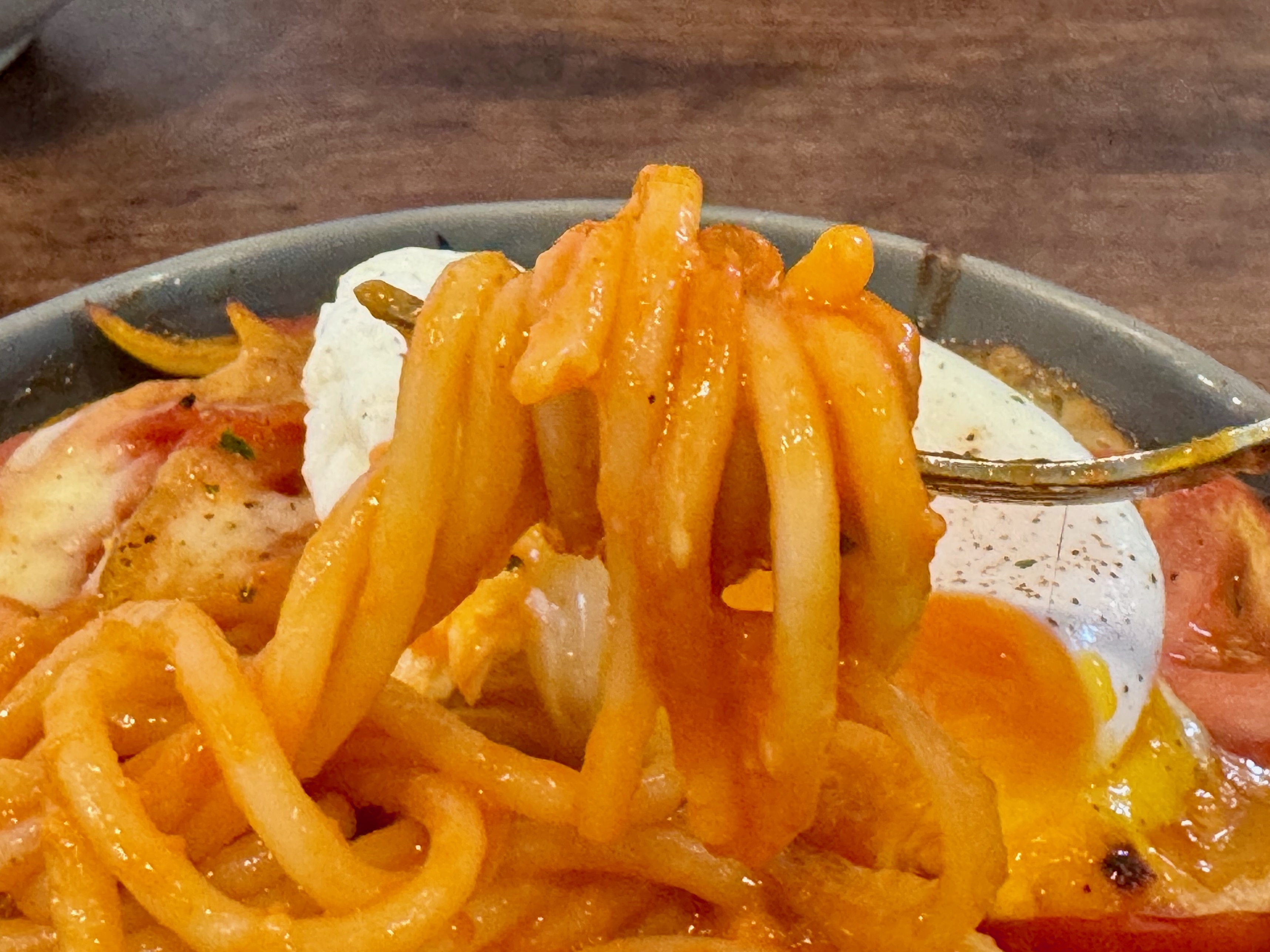 グリルトマトの酸味と濃厚なグラタンが合わさり、絶妙なバランスと満足感!