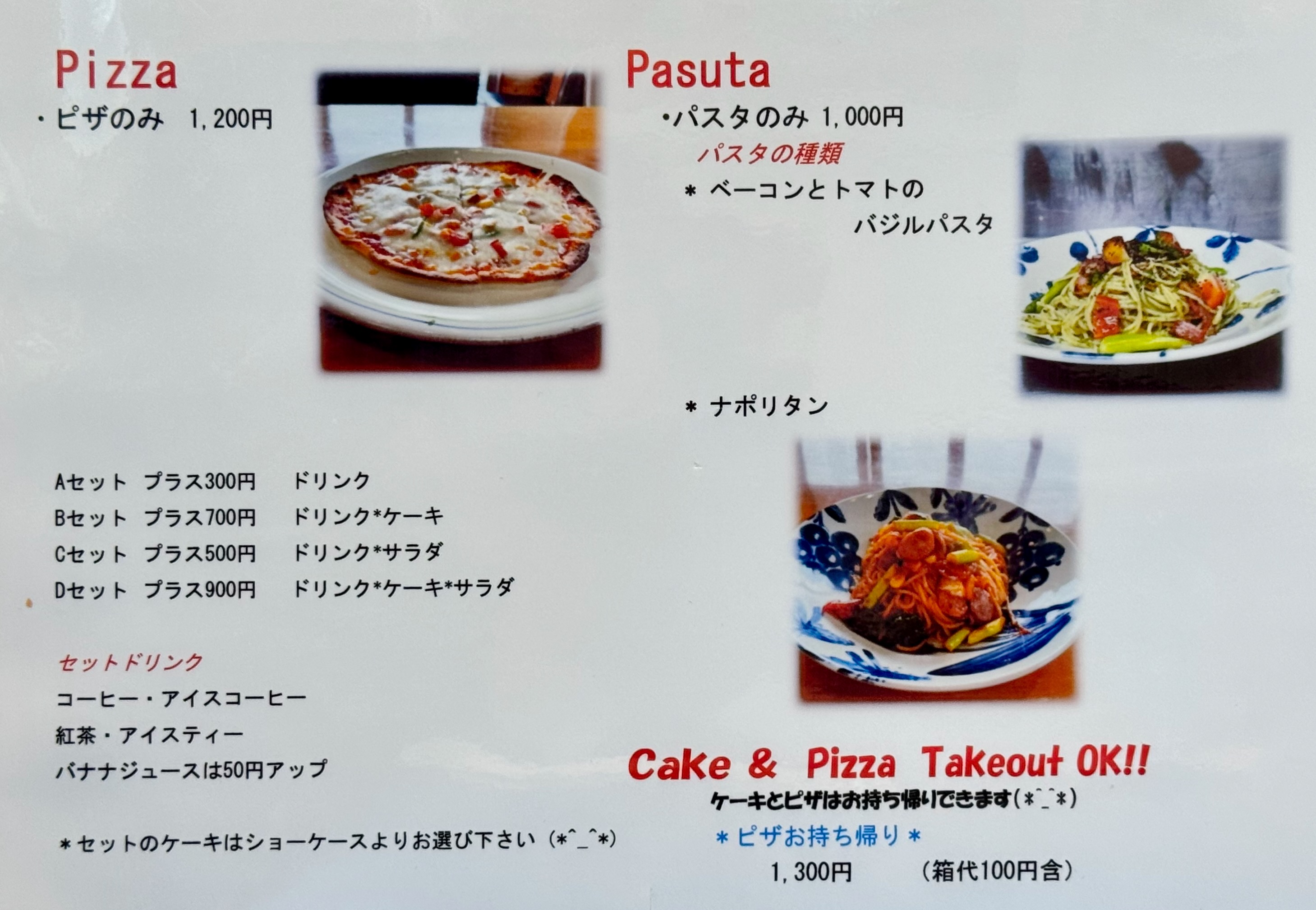 パスタやピザなど手作りフードも用意されていて、スイーツ目当てで入っても、食事の誘惑がさりげなく待っているのがこのお店の楽しいところです。