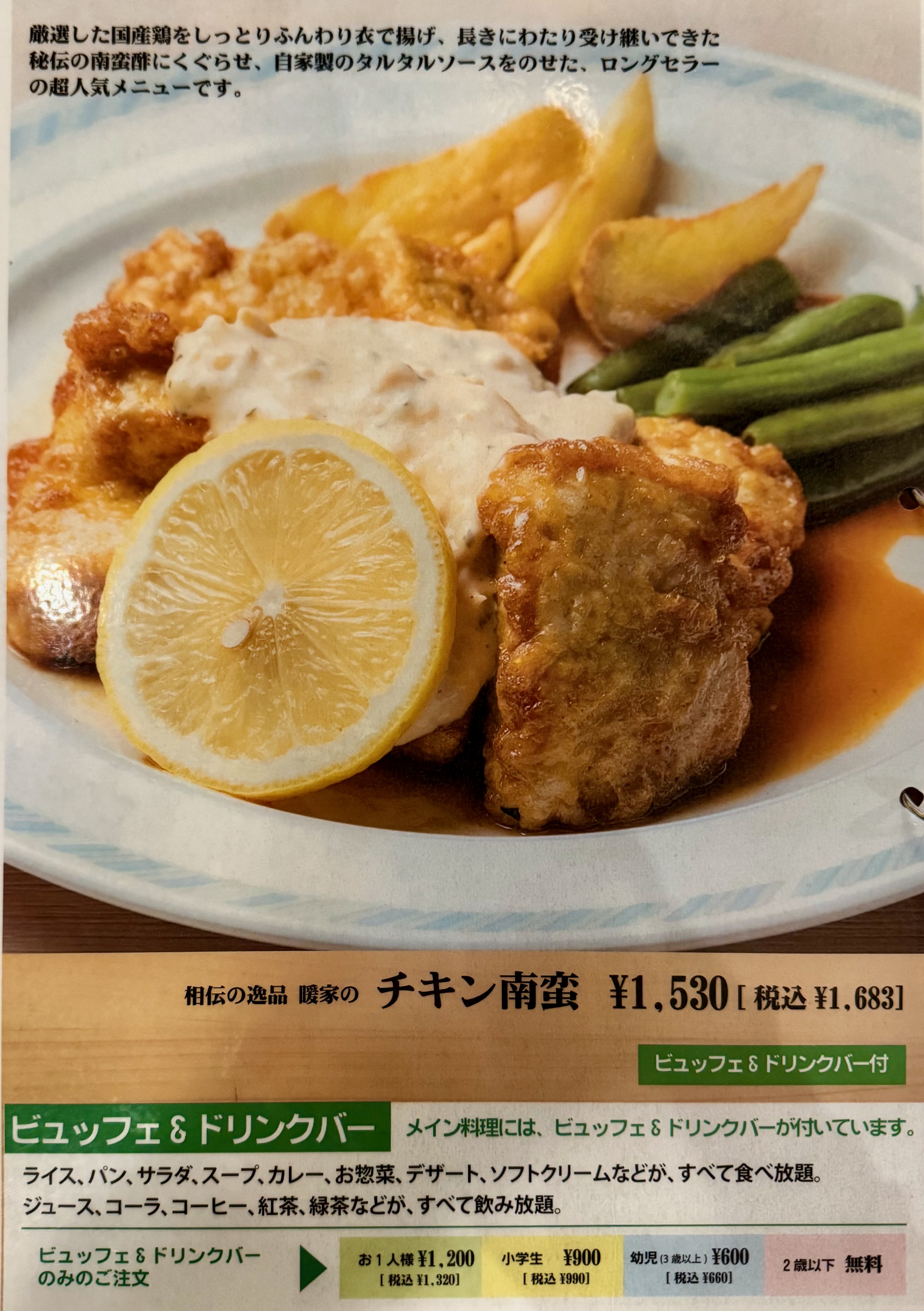 名物のチキン南蛮と天火麺はもちろん、ハンバーグやビュッフェまで含めて、洋食をとことん楽しませてくれます。