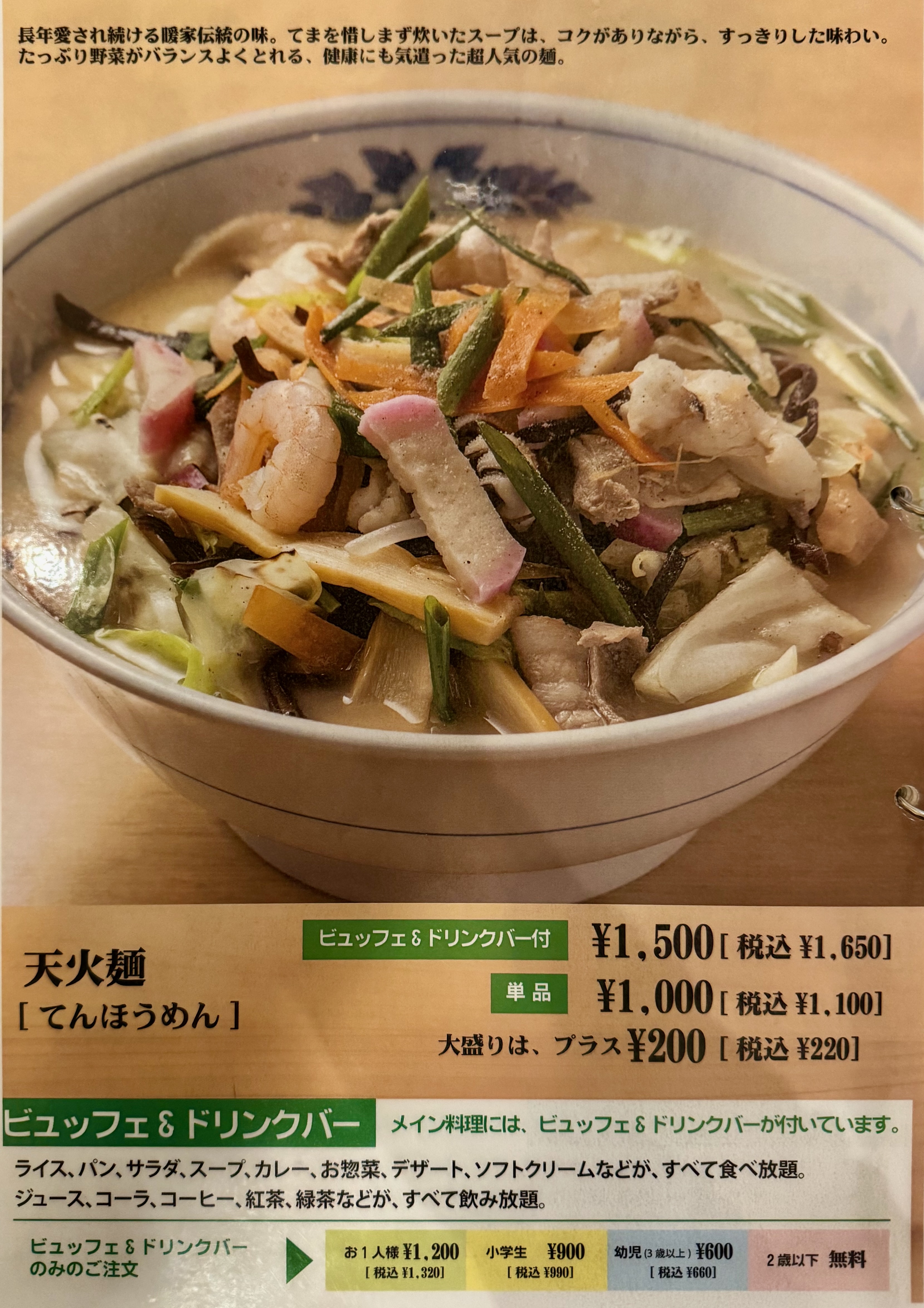 天火麺(ビュッフェ&ドリンクバー付)(1,650円)
