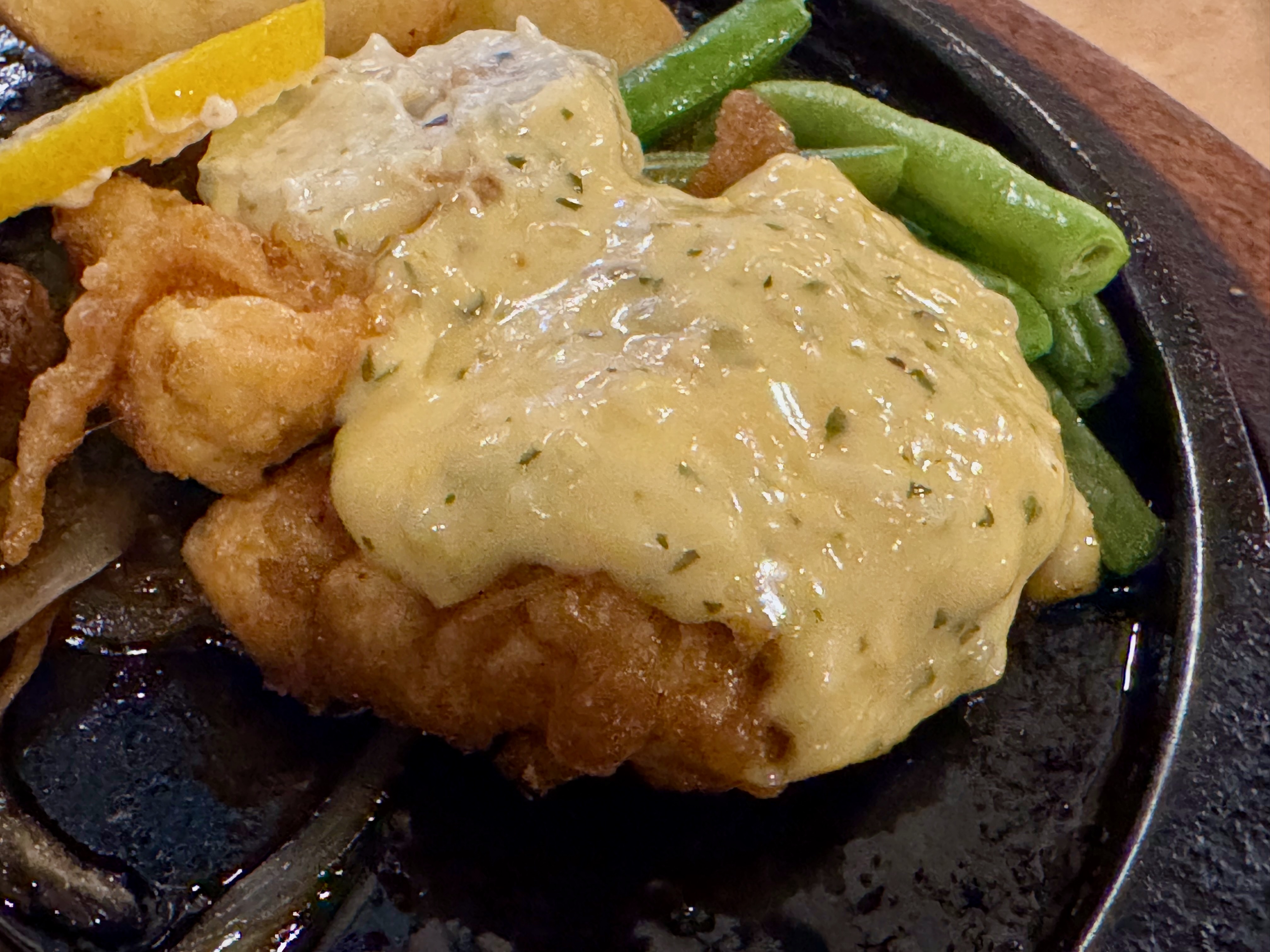 衣の存在感はありつつ重すぎず、甘酸っぱいタレとタルタルがほどよく絡み、口の中で三重奏のようにまとまります。