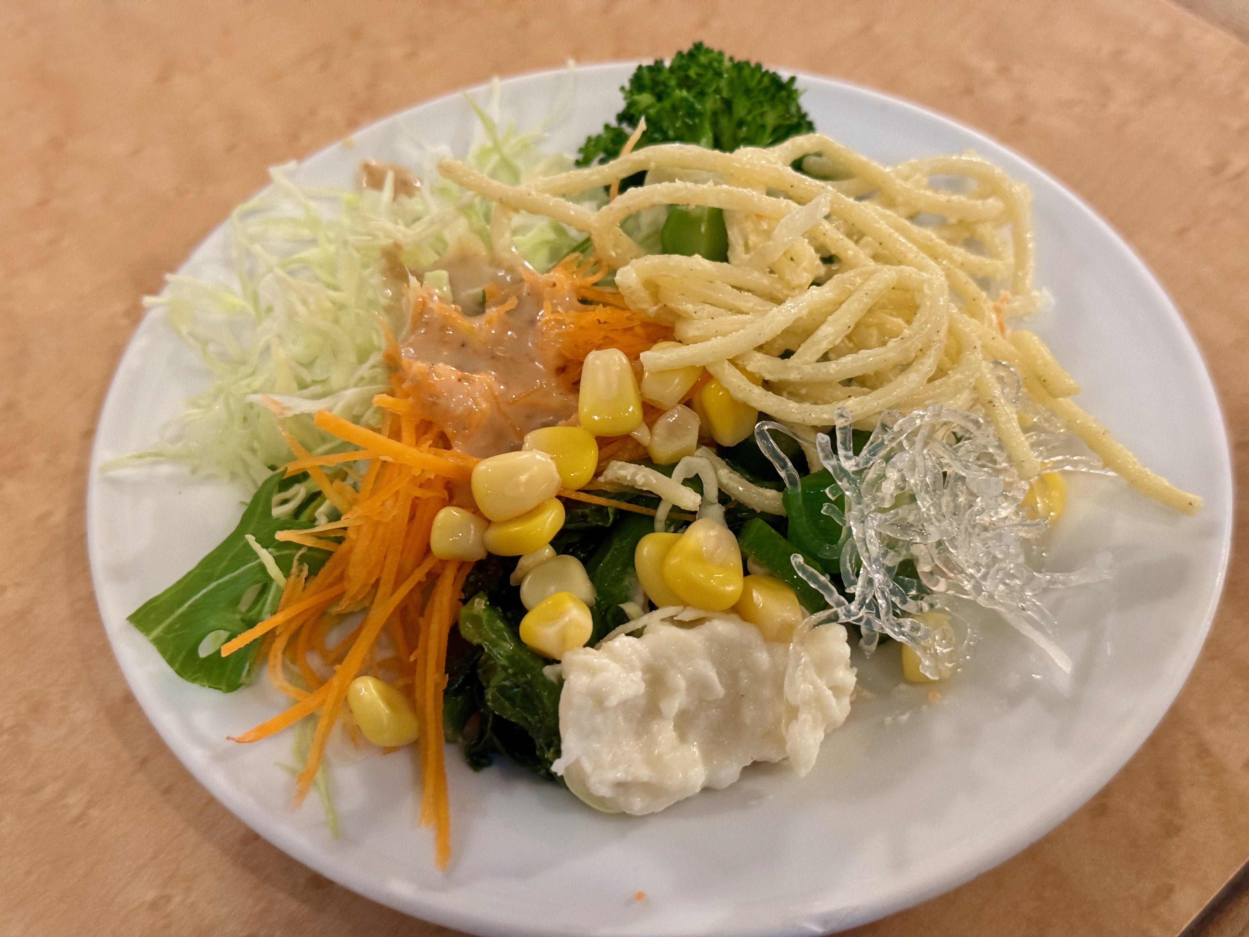 たっぷりのお野菜と麺が絡むヘルシーな一杯です。ビュッフェとドリンクバーが付くことで、麺類単体では終わらない楽しみが生まれます。