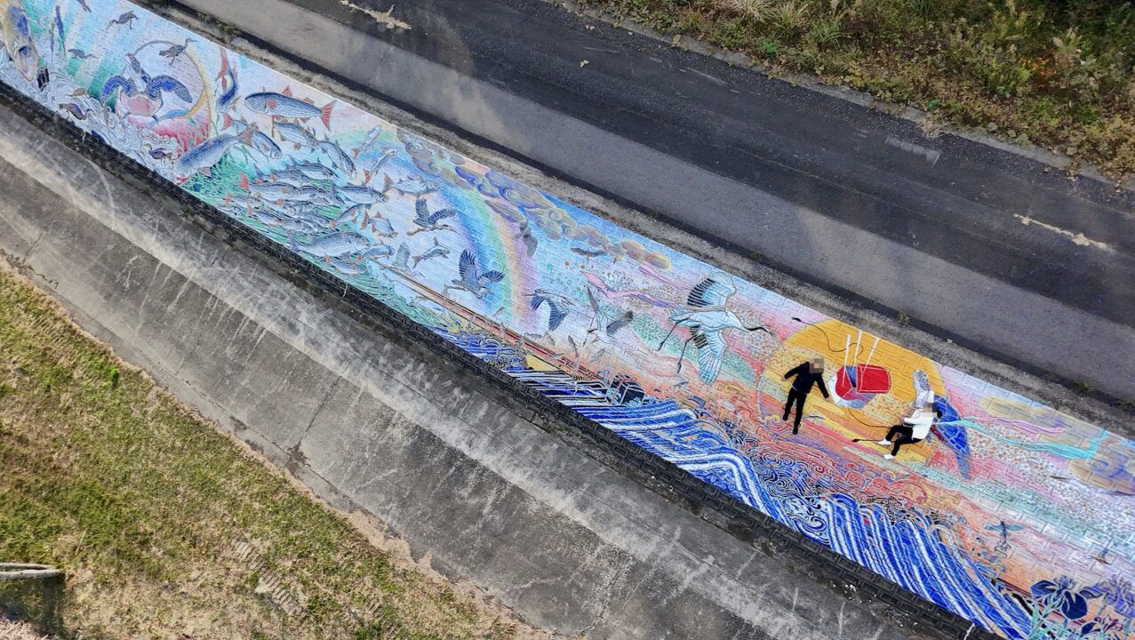 竜宮城をテーマに番匠川や佐伯の海で生息する生き物(伊勢エビやボラなど)が描かれています。