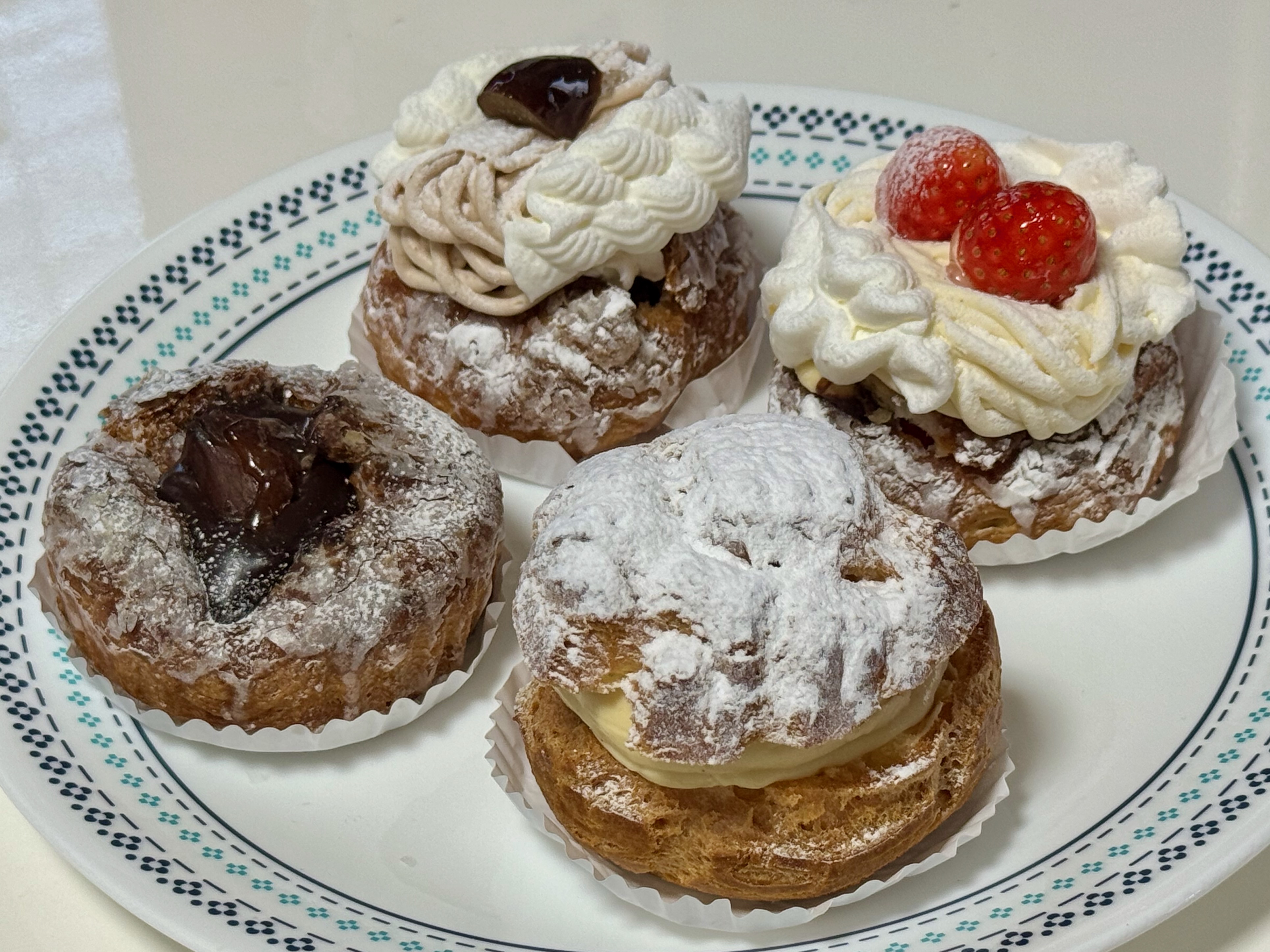 名物のシュークリームはクリーム好きにはたまらないボリュームで、シャンティ系ケーキは生クリームのくちどけと素材のバランスが見事でした。