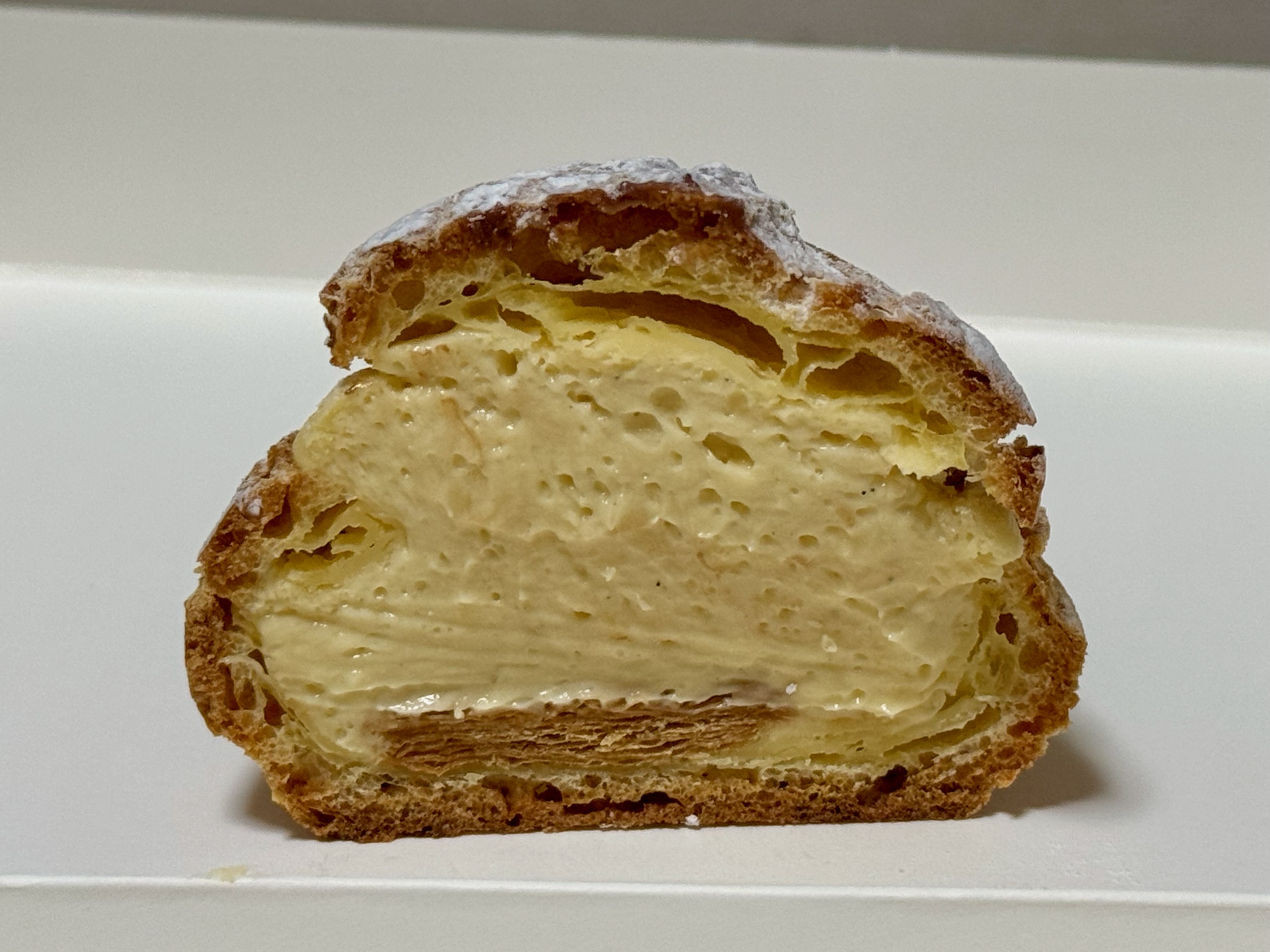 さらに、シューの底にはパイ生地を入れることでパリパリの食感が加わっています。