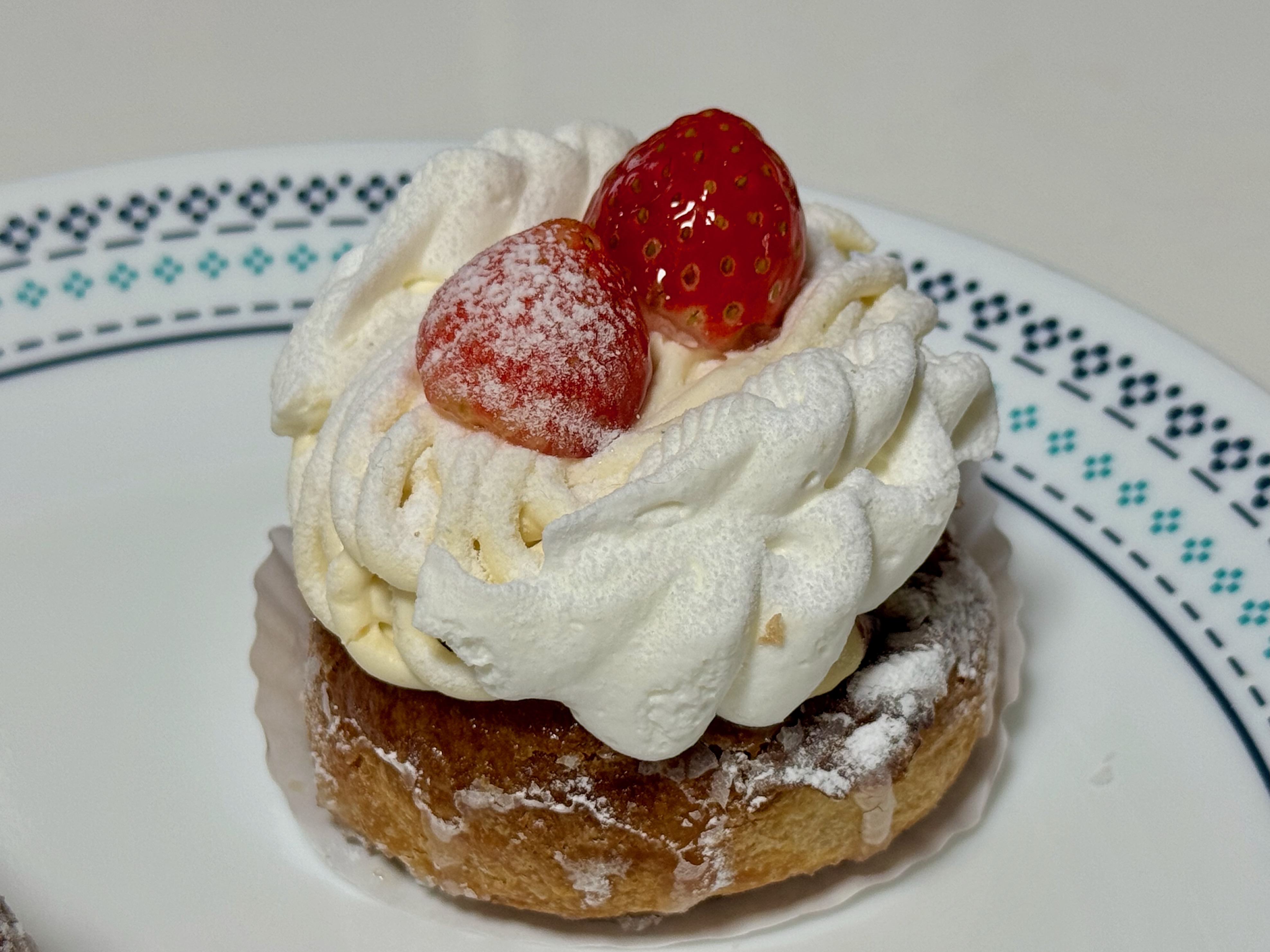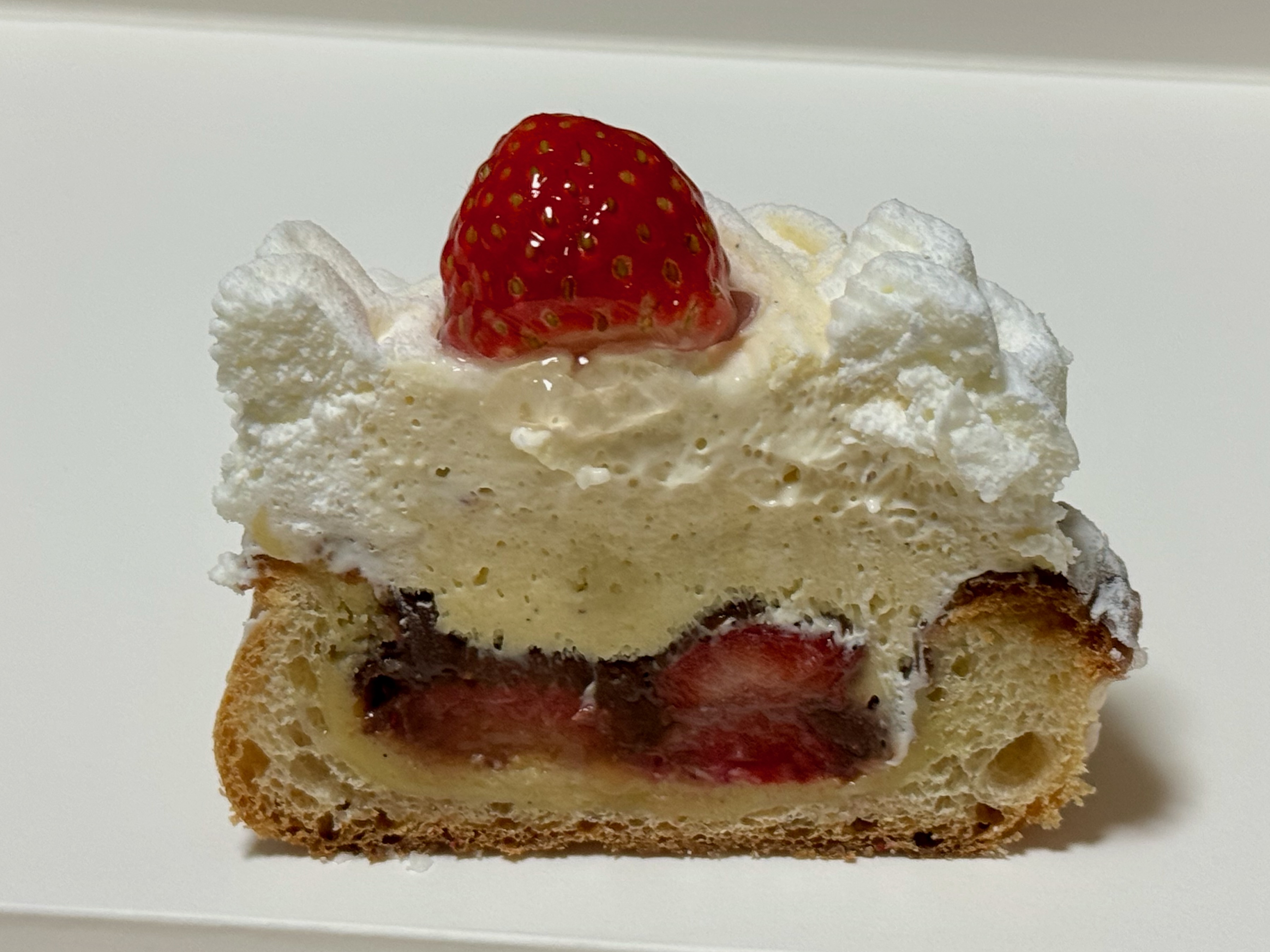 イチゴがちょこんと乗った可愛らしいビジュアルで、クリームの盛り方や層のバランスも美しく、一目で「丁寧に作られている」ことが分かります。