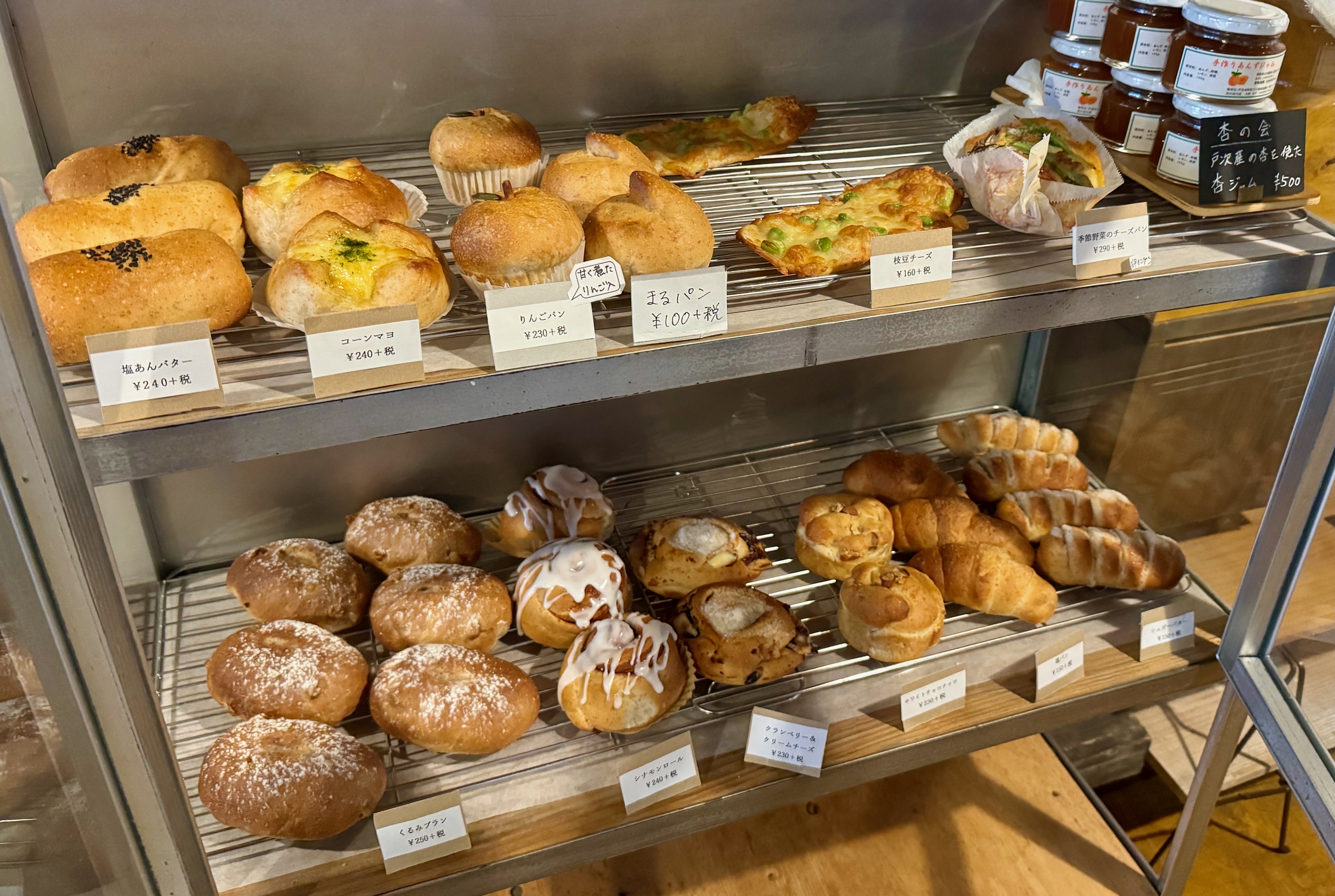 『HARIYO』の魅力を語るうえで外せないのが自家製パンです。ショーケースには店内で焼き上げたパンが販売されています。