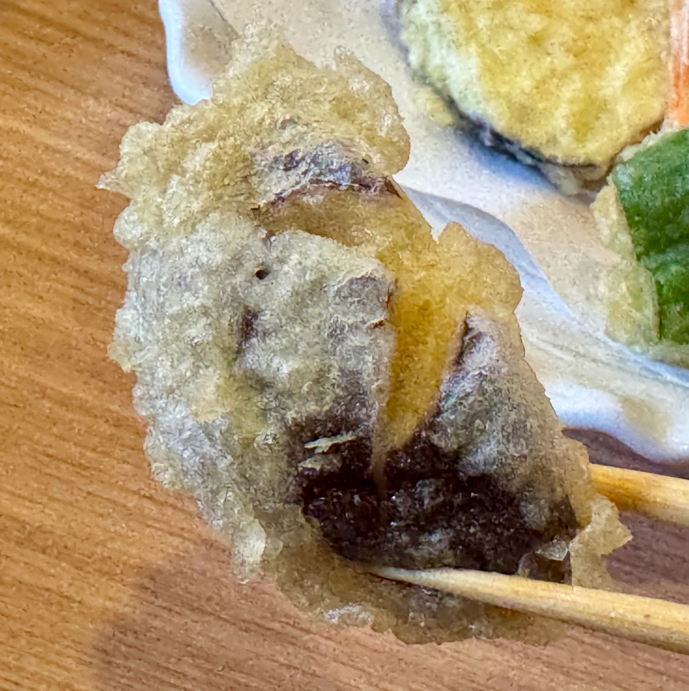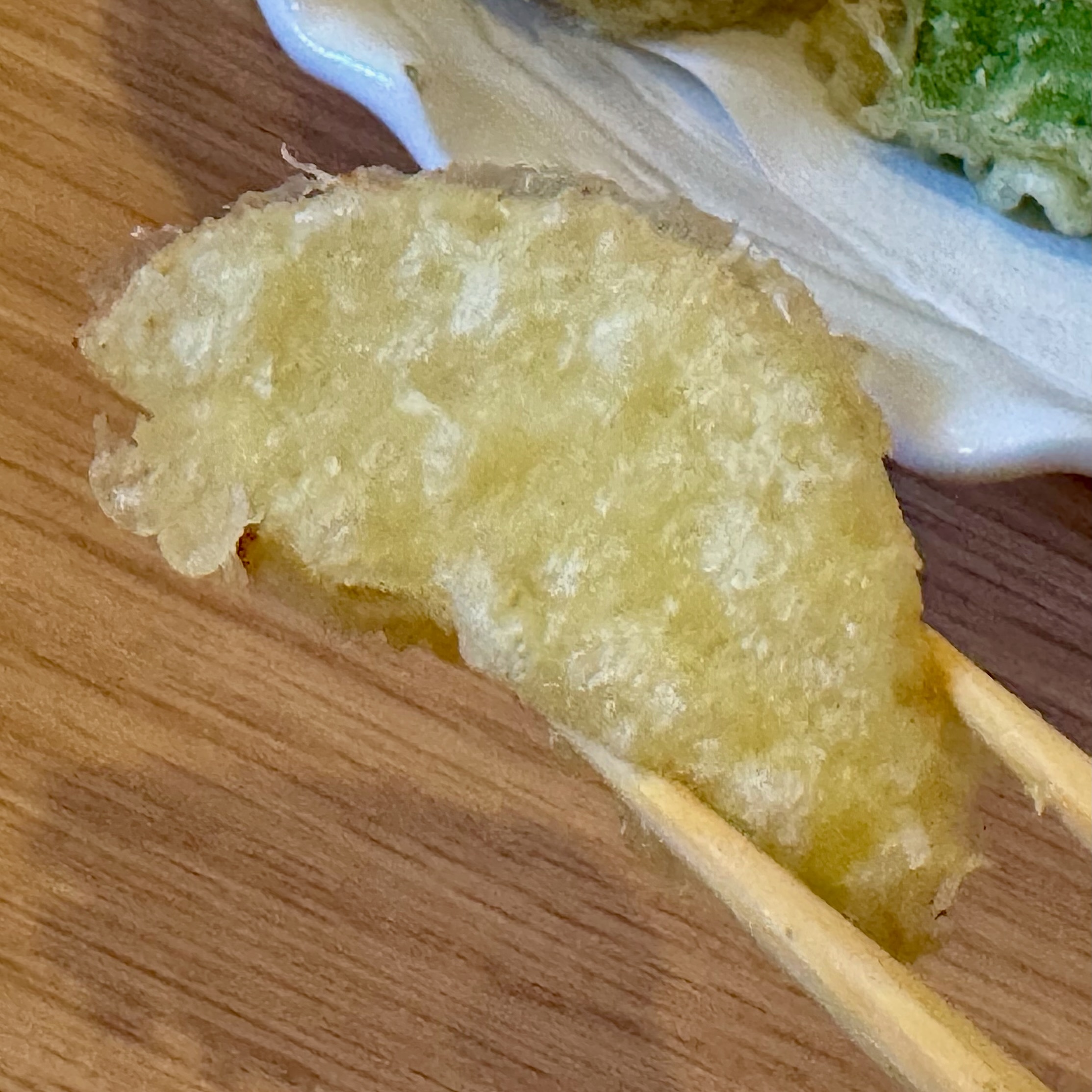 油のキレが良く、塩で食べても天つゆで食べても重さが残らないため、鯛茶と一緒にいただいても最後までおいしく完走できるバランスになっています。