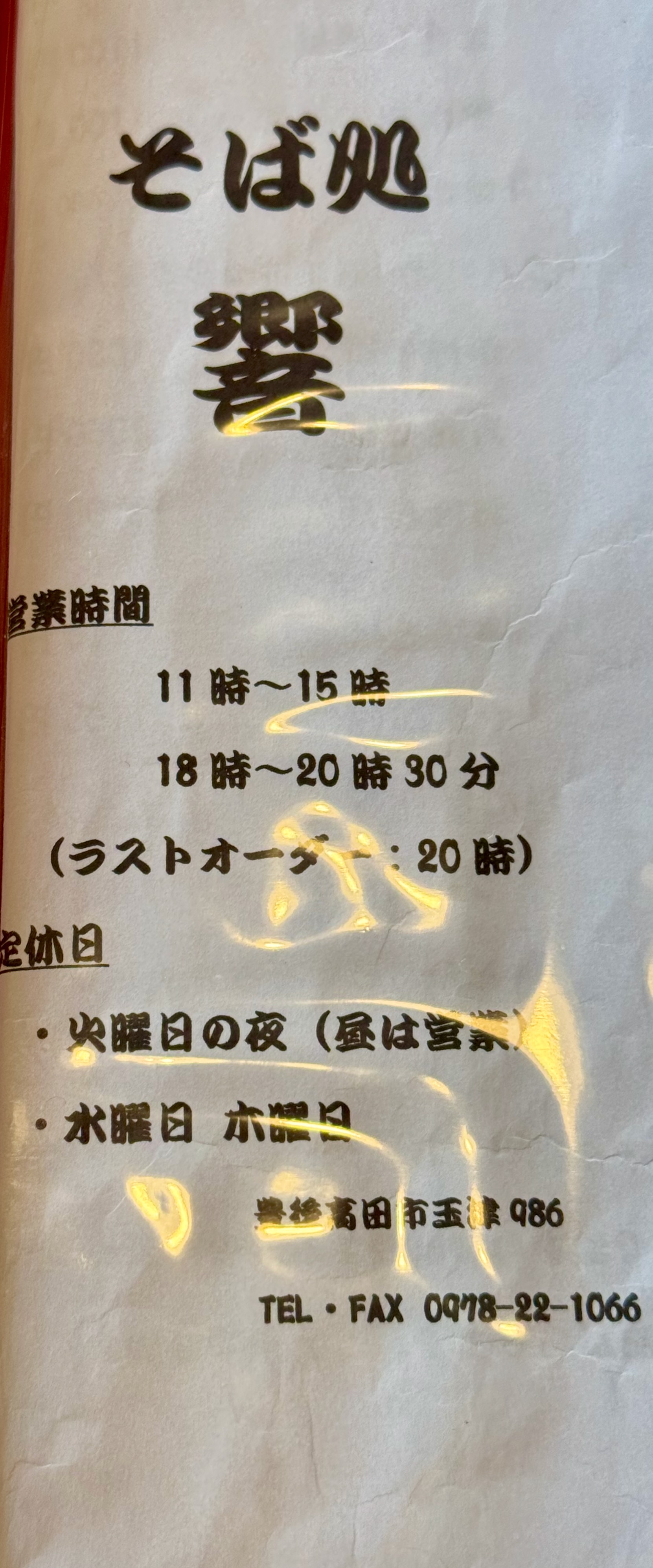 | 店名 | そば処 響(ひびき) |