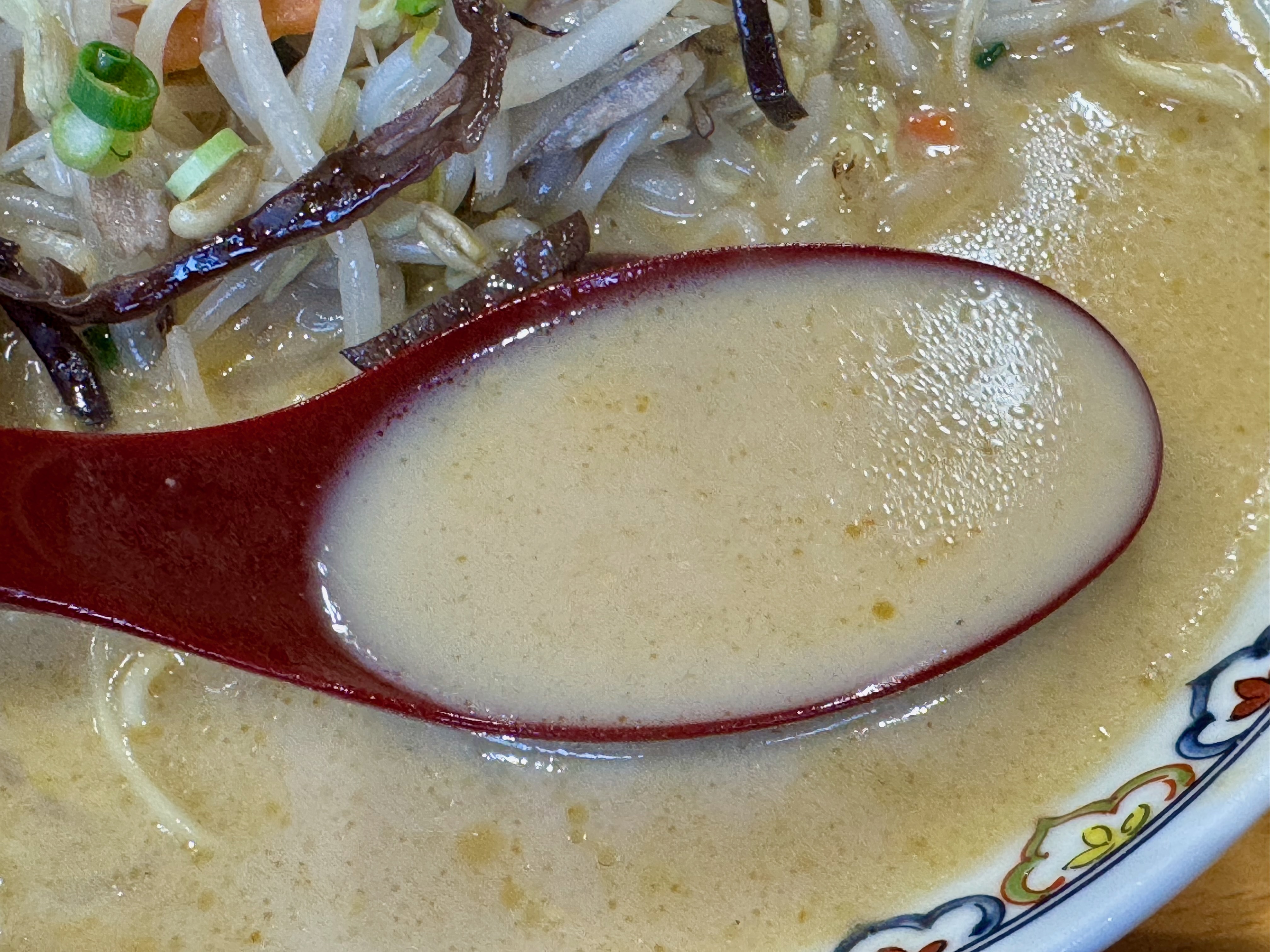 スープは、口に含むと驚くほどまろやかで、いわゆる獣臭さが控えめなミルキータイプです。