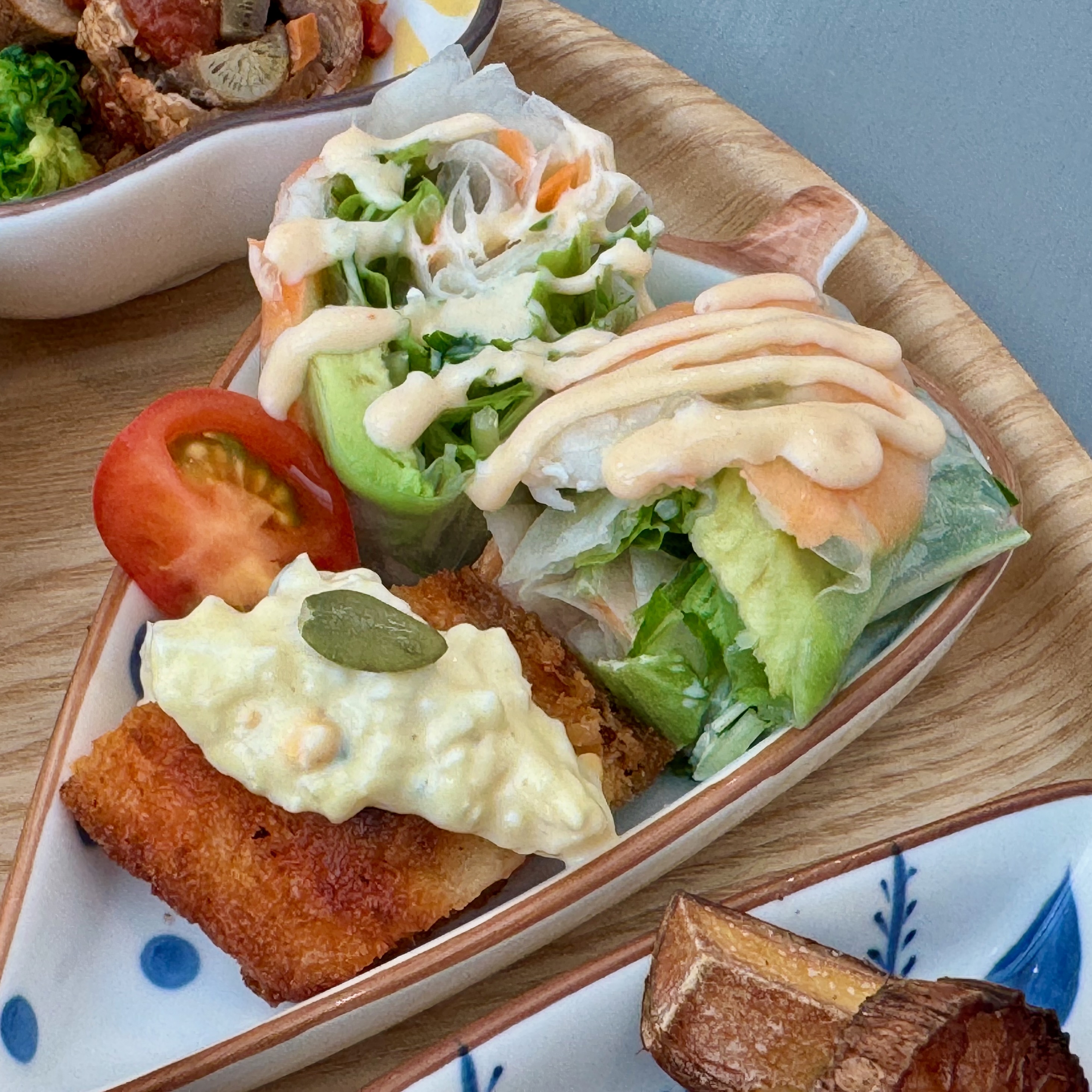 小鉢は揚げ物、焼き物、煮物、サラダなど彩り豊かに並び、一つ一つが“家のごはんよりちょっと手が込んだお惣菜”という印象です。 和のだしの香りや、薄すぎず濃すぎない絶妙な味付けに、丁寧に時間をかけて準備されていることが伝わってきて、食べ終わる頃には心もお腹もふんわり満たされていました。