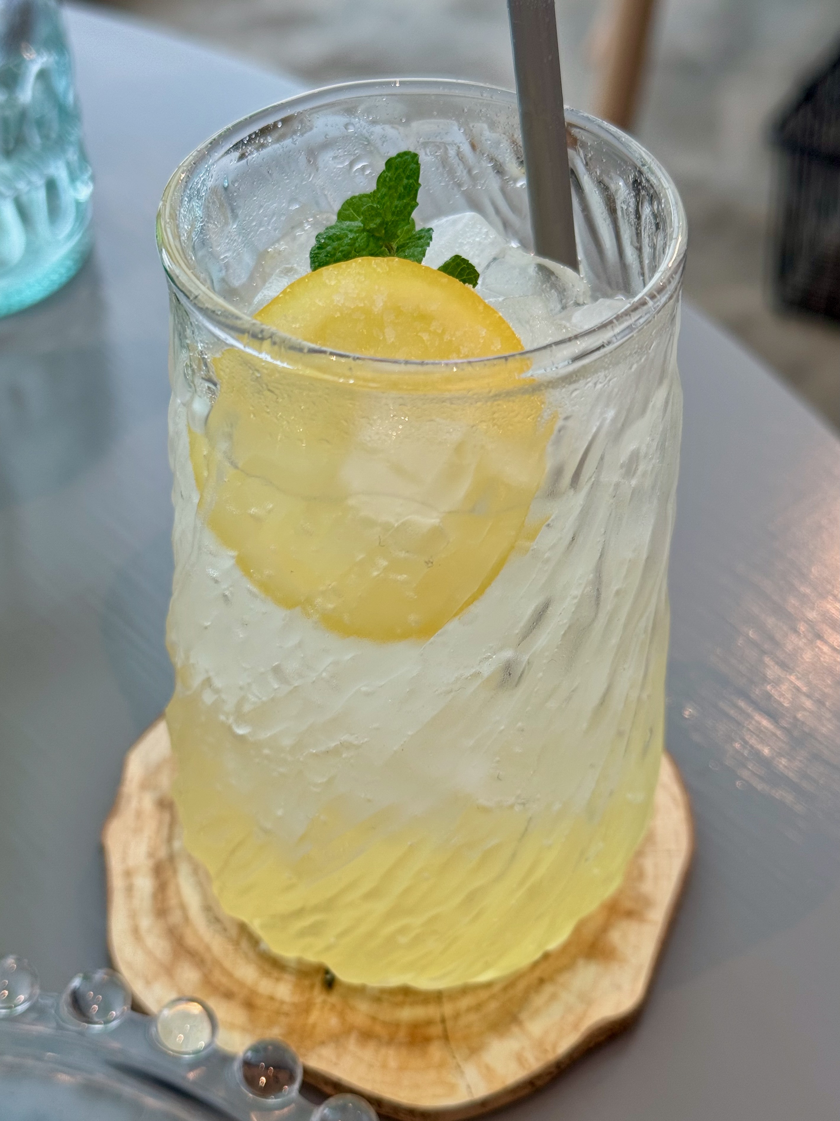 自家製レモネードソーダは、グラスの中にレモンのスライスが入ったタイプで、見た目からして爽やかさ満点の一杯です。