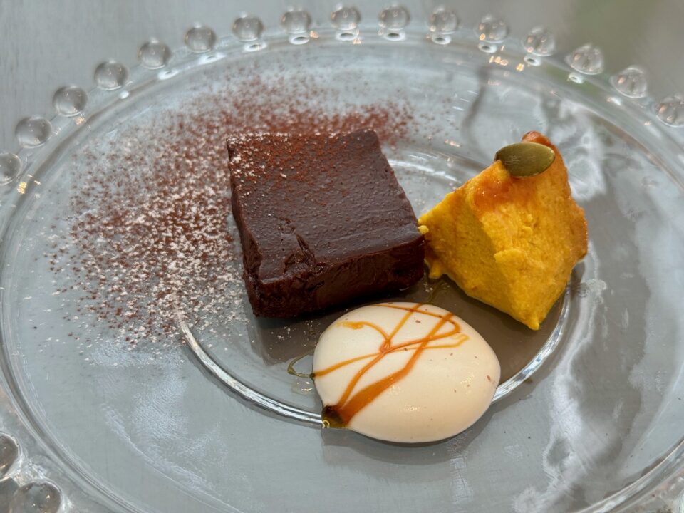 ランチに+200円で付けられる「本日のデザート」は、この日はショコラテリーヌとかぼちゃのプリンの2種盛りという、甘党にはたまらない組み合わせでした。