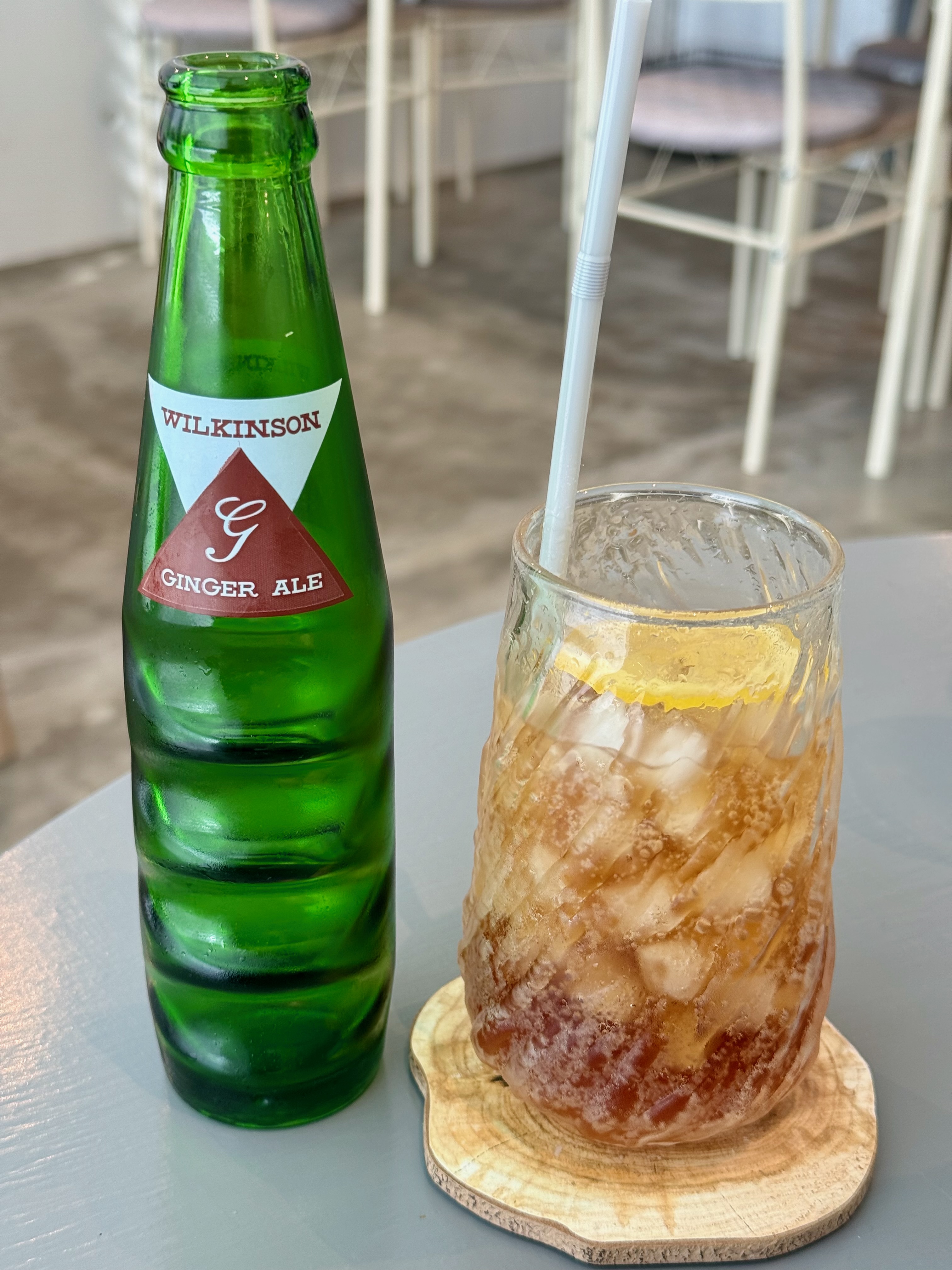 ジンジャーエールは、ウィルキンソンの辛口。きりっとした炭酸と生姜の香りが立った一杯で、口に含んだ瞬間にスパイスのニュアンスがふわっと広がります。