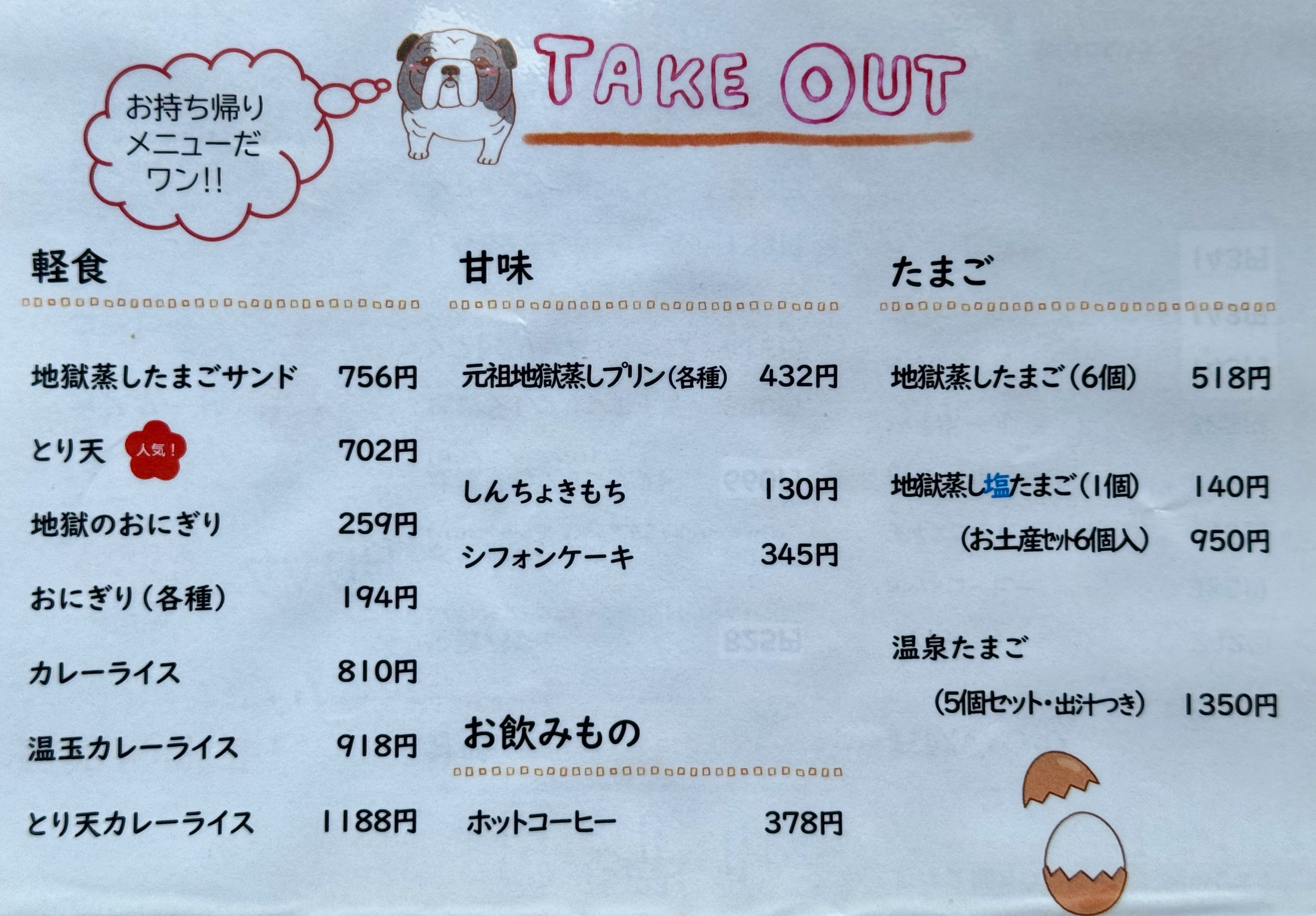 看板商品の「地獄蒸しプリン」をはじめ、名物「地獄蒸したまごサンド」、大分の郷土料理「とり天」、「地獄蒸し塩たまご」など、別府ならではの温泉を利用したグルメがずらりと揃っています。