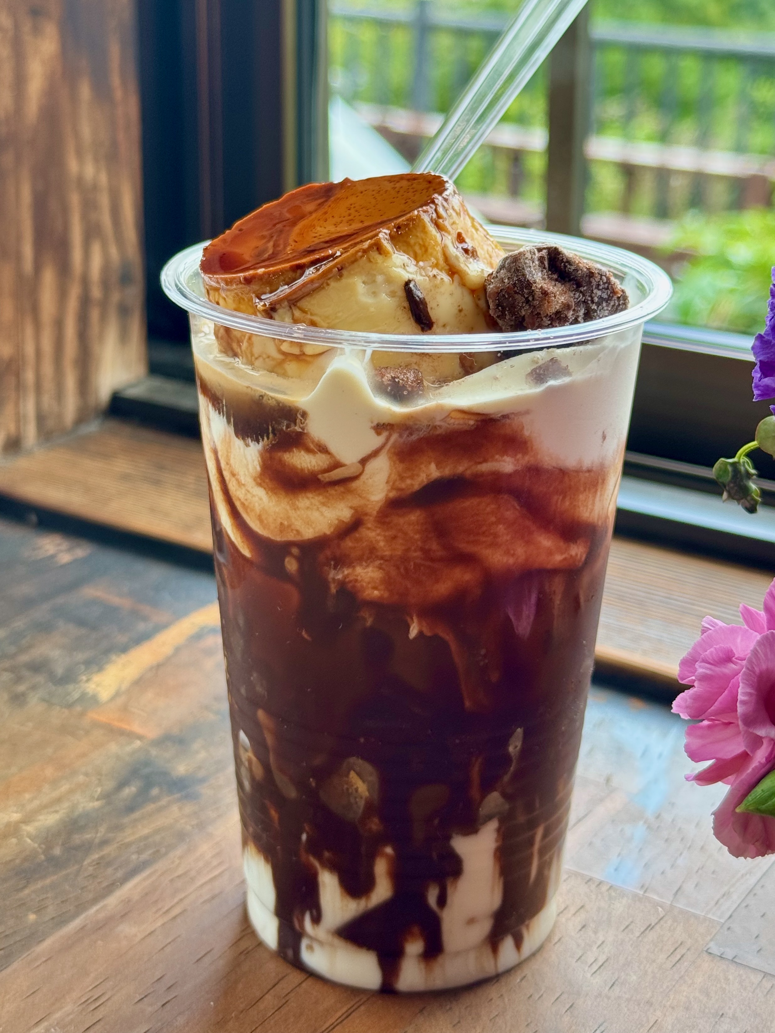カラメルのほろ苦さと濃厚なソフト、コーヒー氷もトッピングされている大人向けのパフェです。