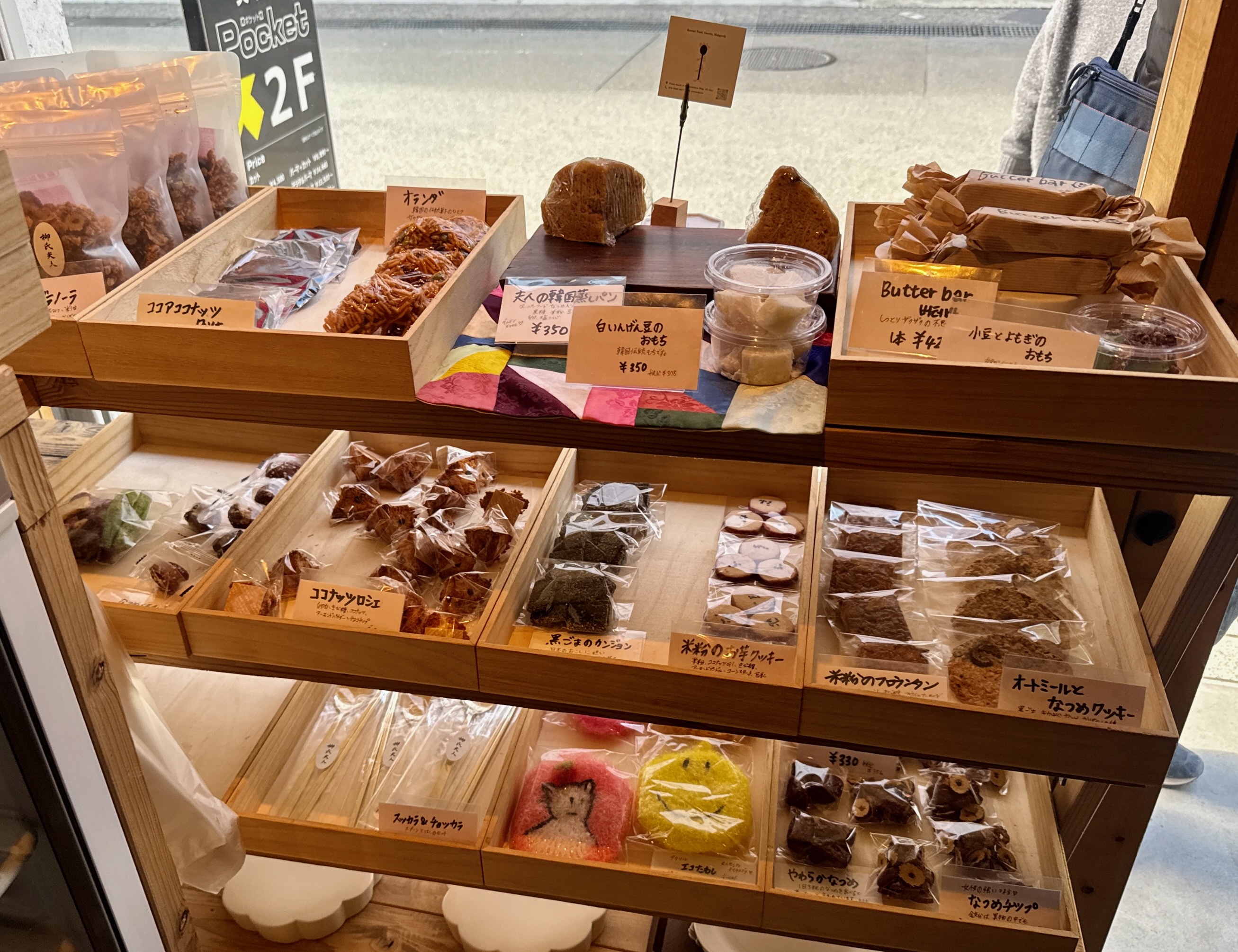 体に優しい素材を使った物が多く、自宅でのティータイム用や、友人への手土産としても使いやすいのも魅力。「ランチに来たついでにおやつを買って帰る」という流れが自然に生まれます。