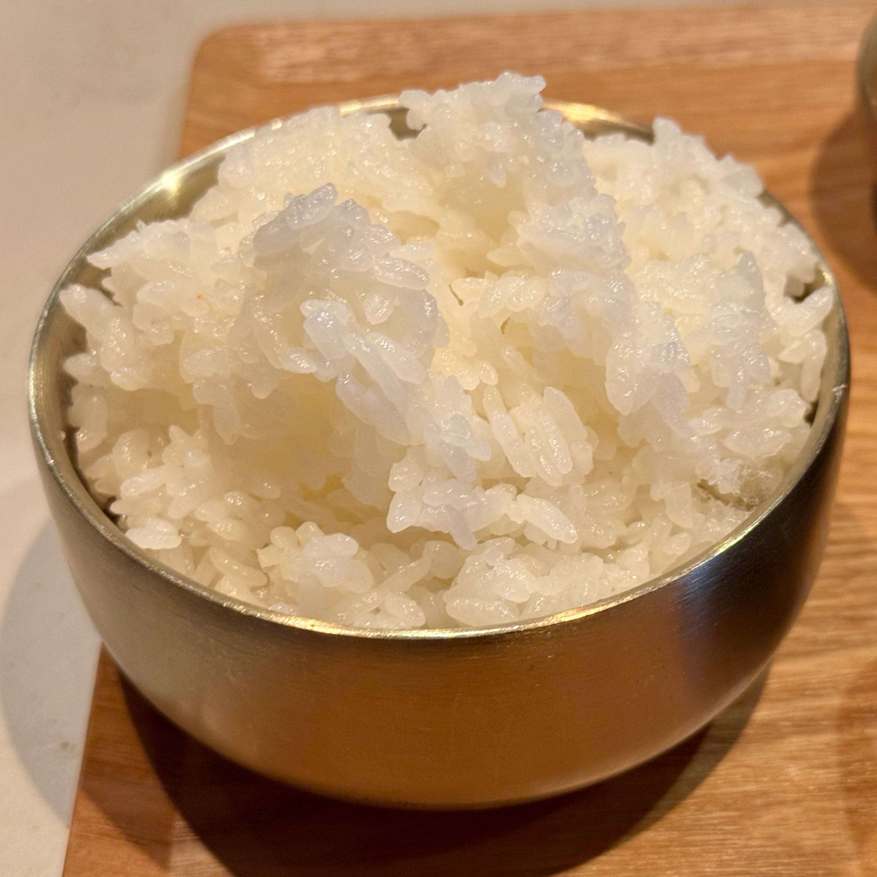 白米の量は大・中・小を選べますが、大をチョイス!白ご飯は契約農家から仕入れる山香米を使用しています。さらにチゲ用追い白米は+220円です。