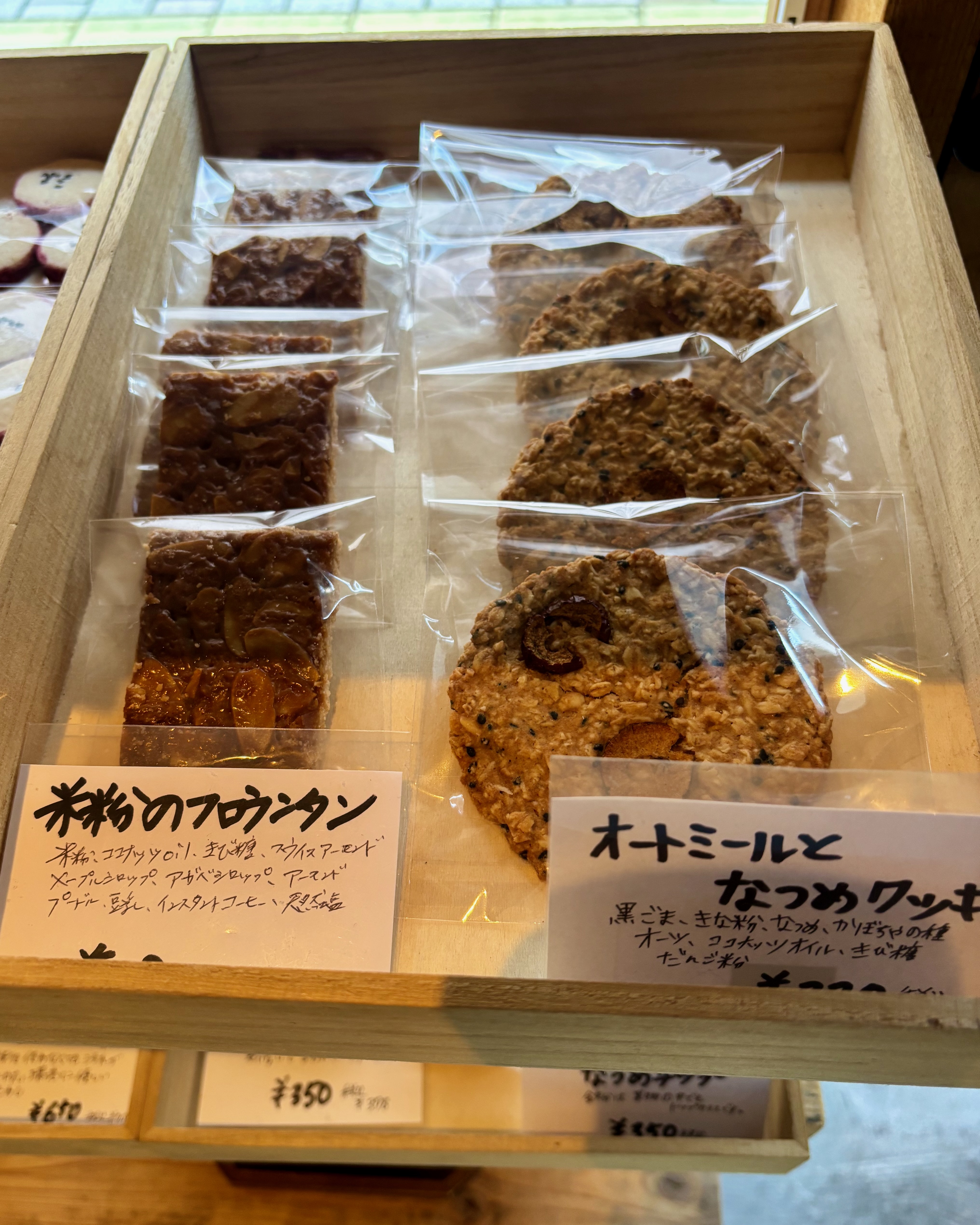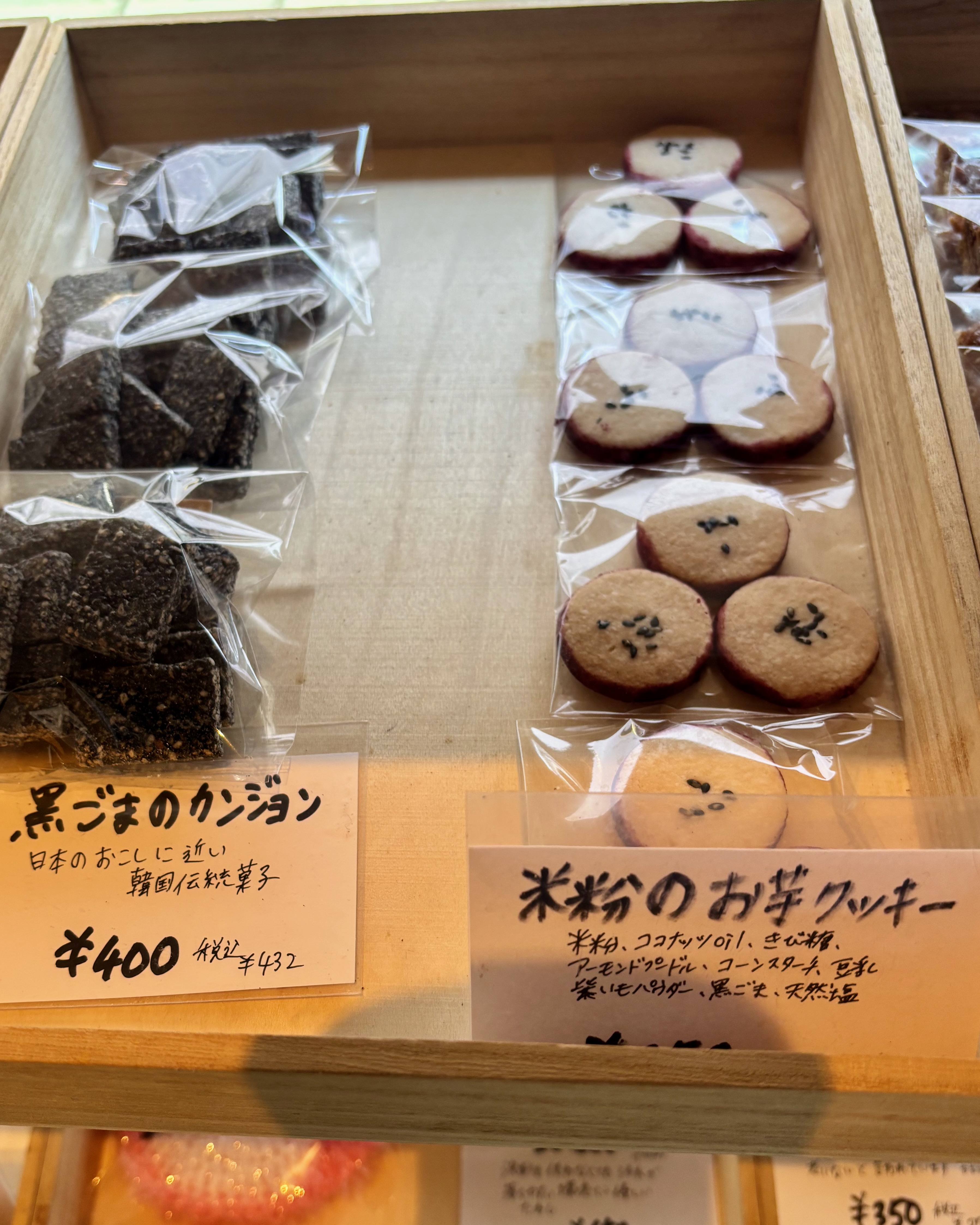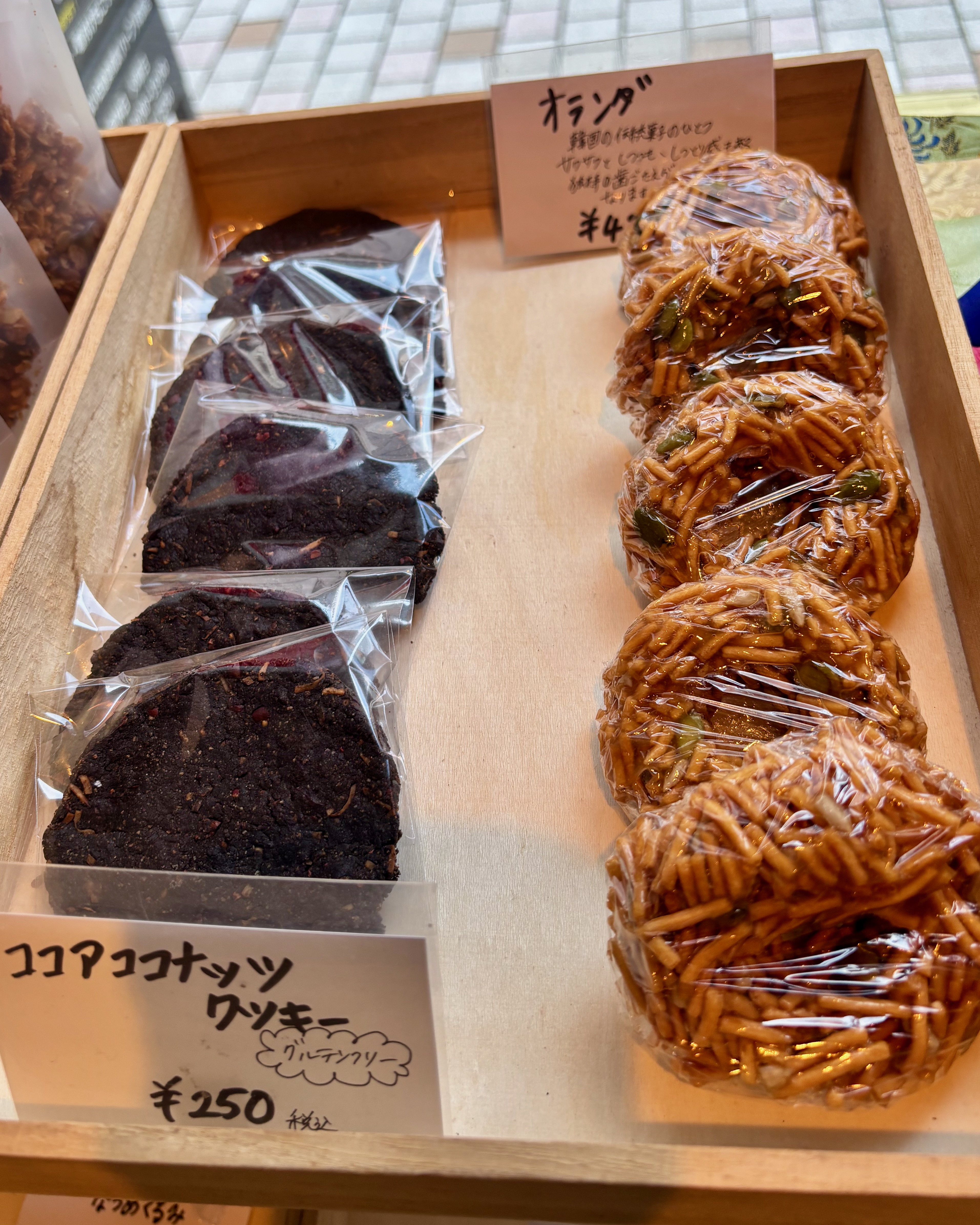 米粉や穀物、ナッツ、はちみつや黒糖などを使った素朴なお菓子で、派手な甘さではなく、じんわりと体になじむ甘みが魅力になっています。